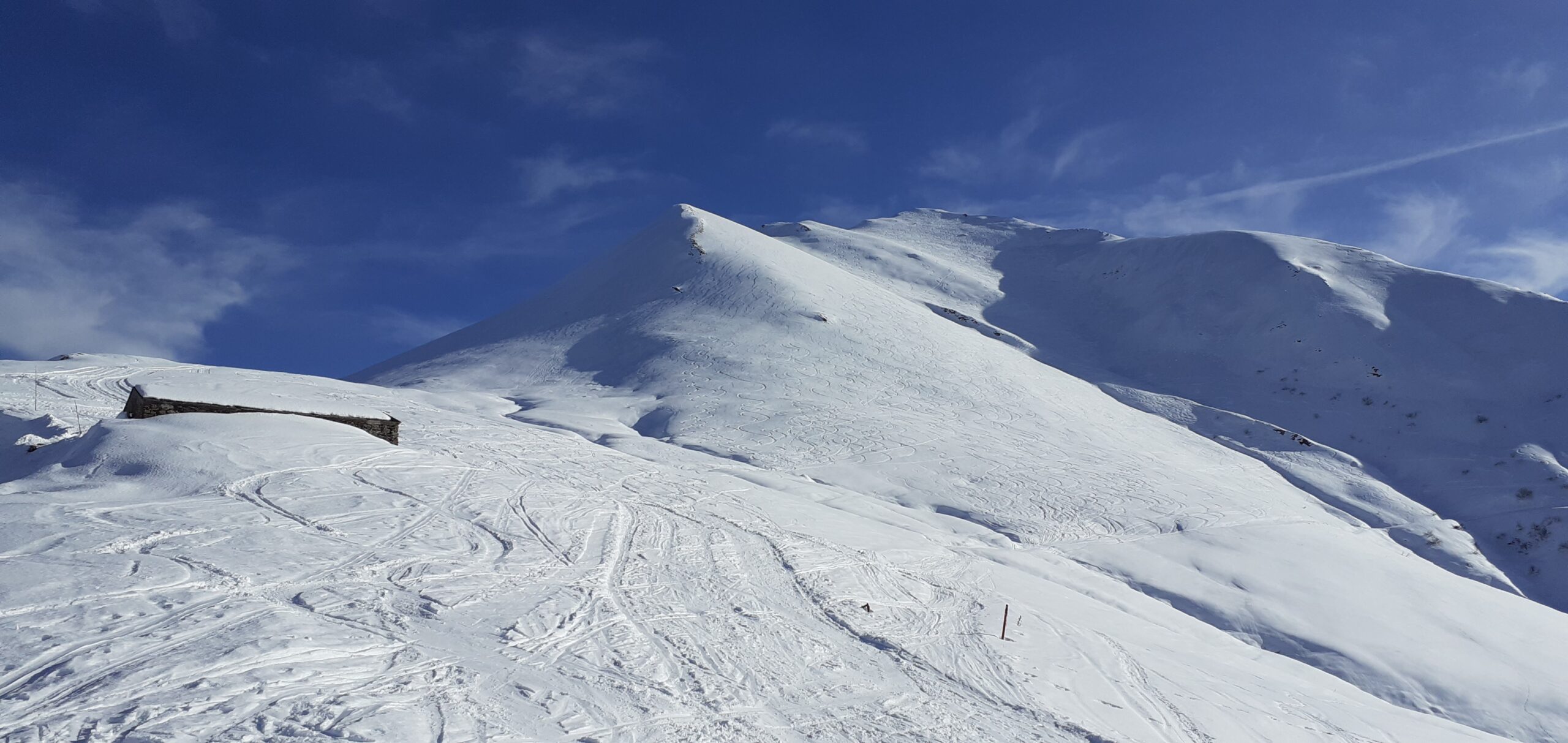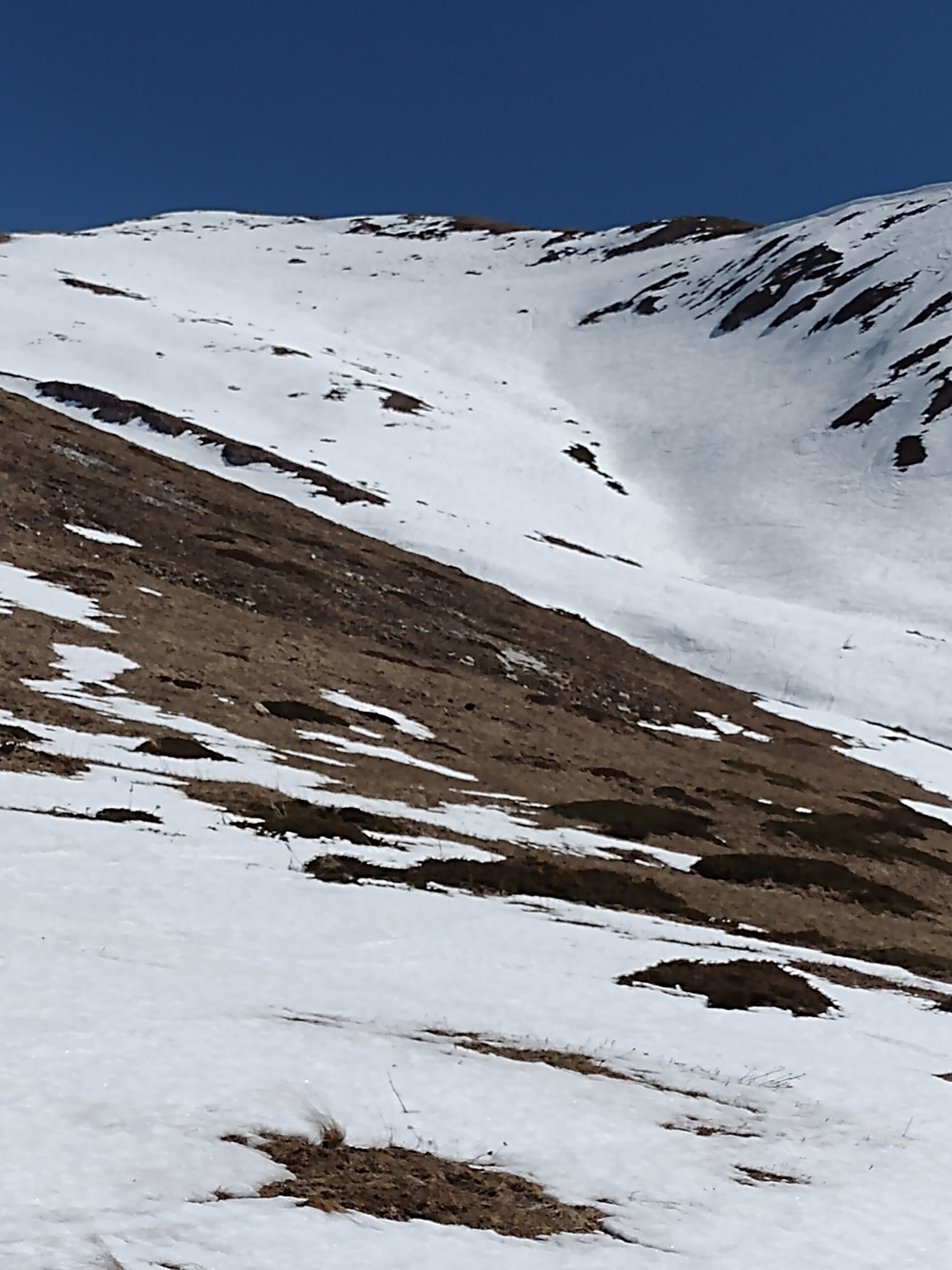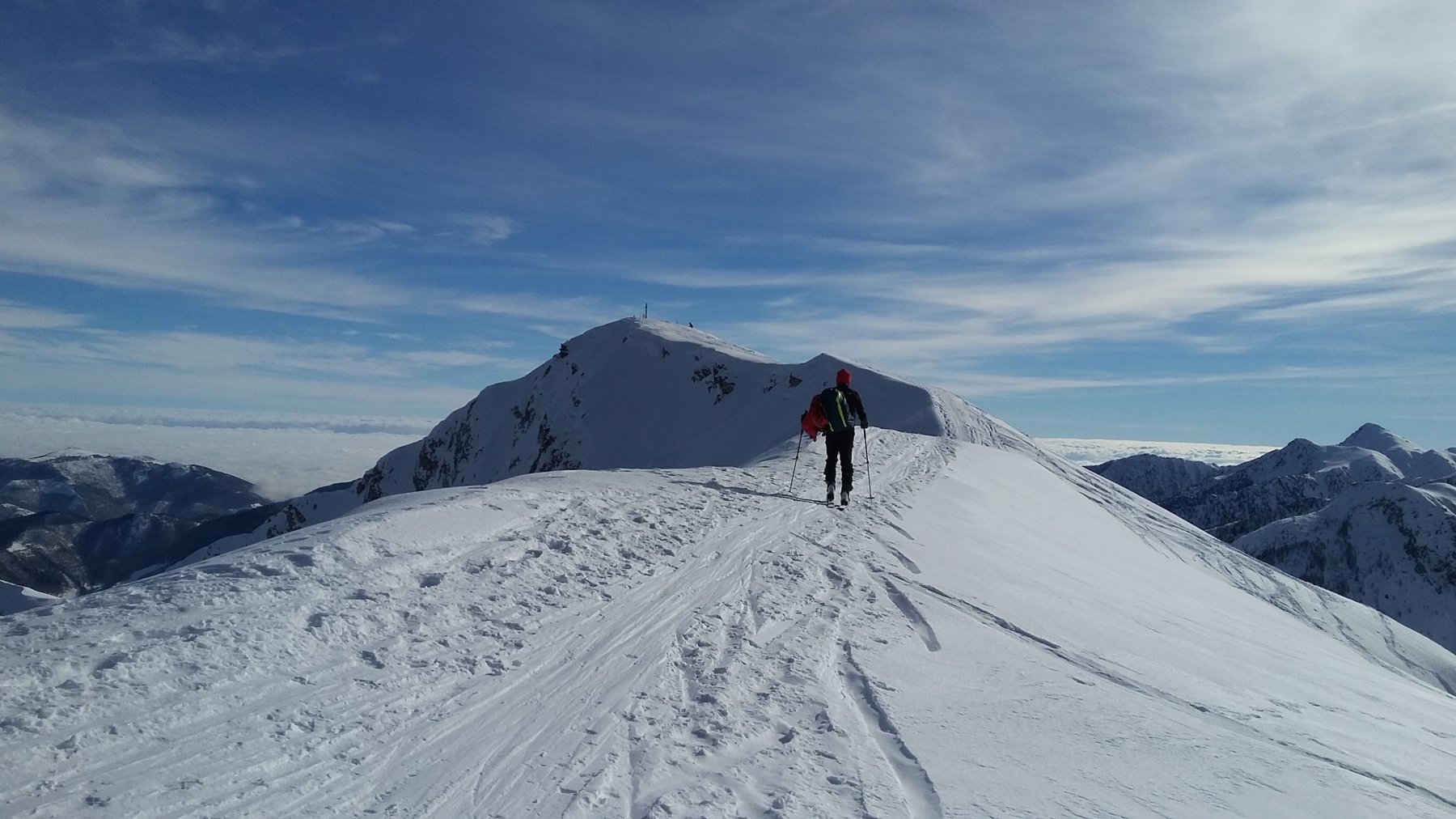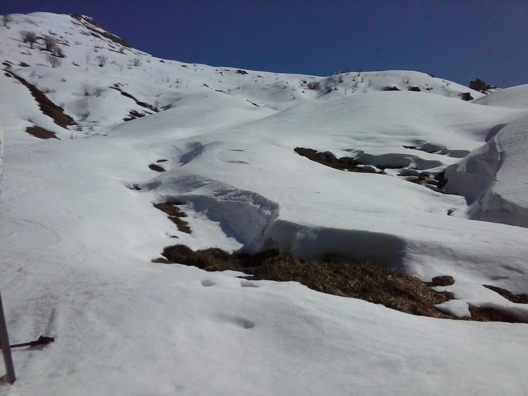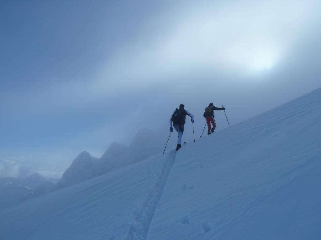 Si piega a sinistra e si risale la dorsale in massima pendenza ed entrando in parte nel canalone solo se la neve è assolutamente sicura.