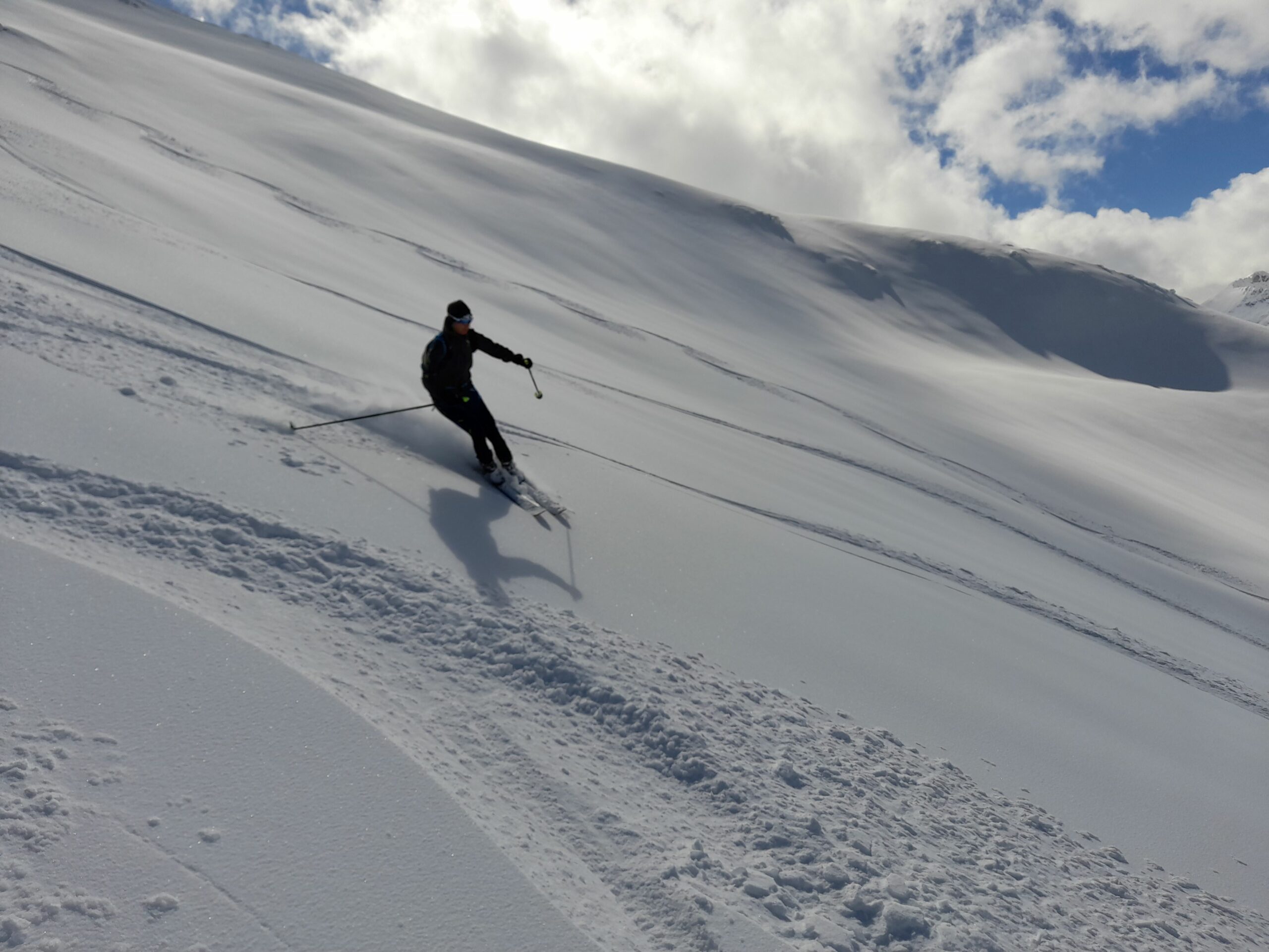Oggi avevamo deciso di risalire la piste di Artesina ma una volta raggiunta colla Bauzano abbiamo seguito le tracce che portavano in cima al Mondolè con successiva bella discesa nel canalone Ovest trovando neve compatta con un leggero strato di farina superficiale .Dalla colla Bauzano in giù sciato su pista , bella in alto più pesante all’arrivo .
