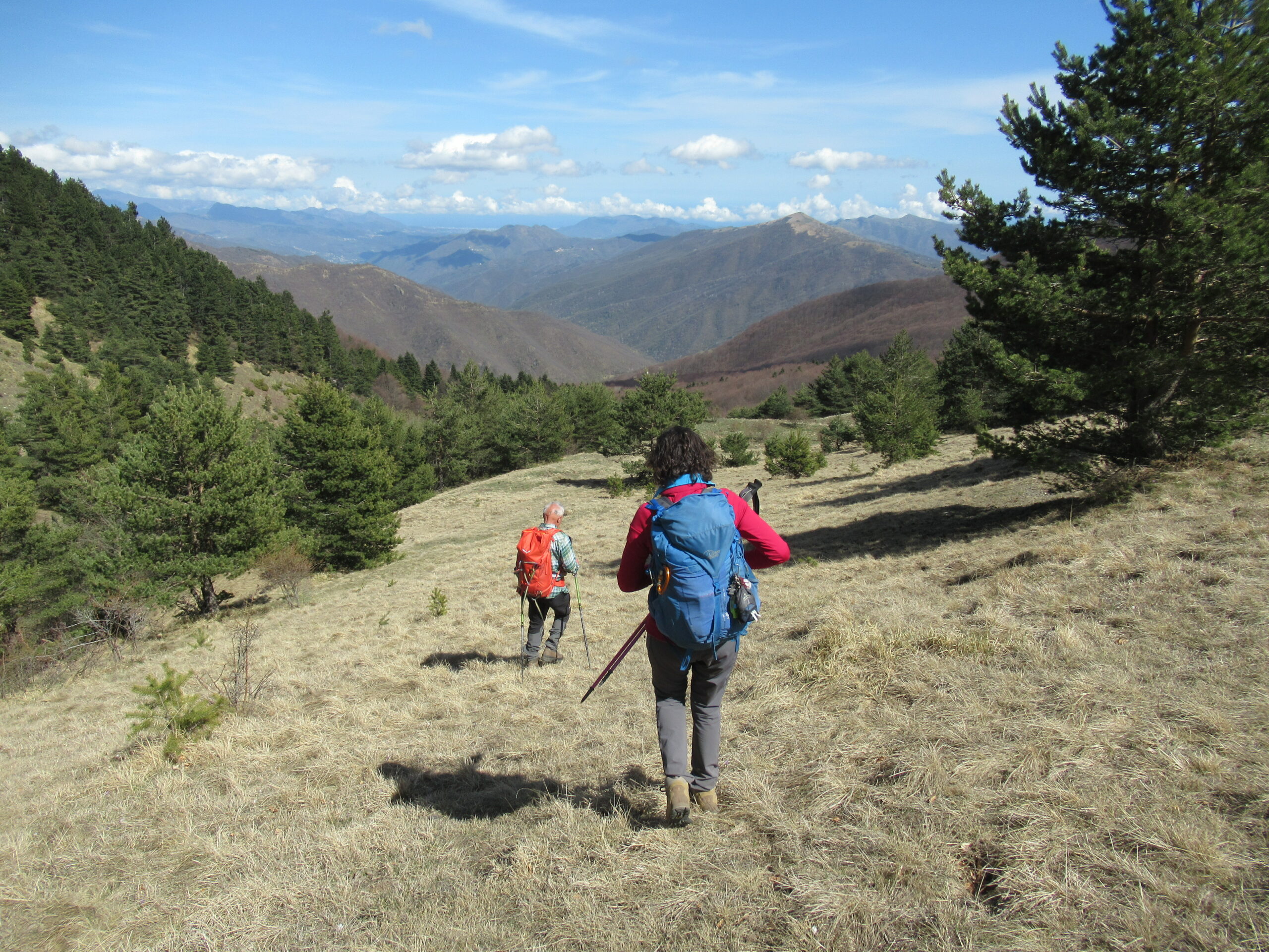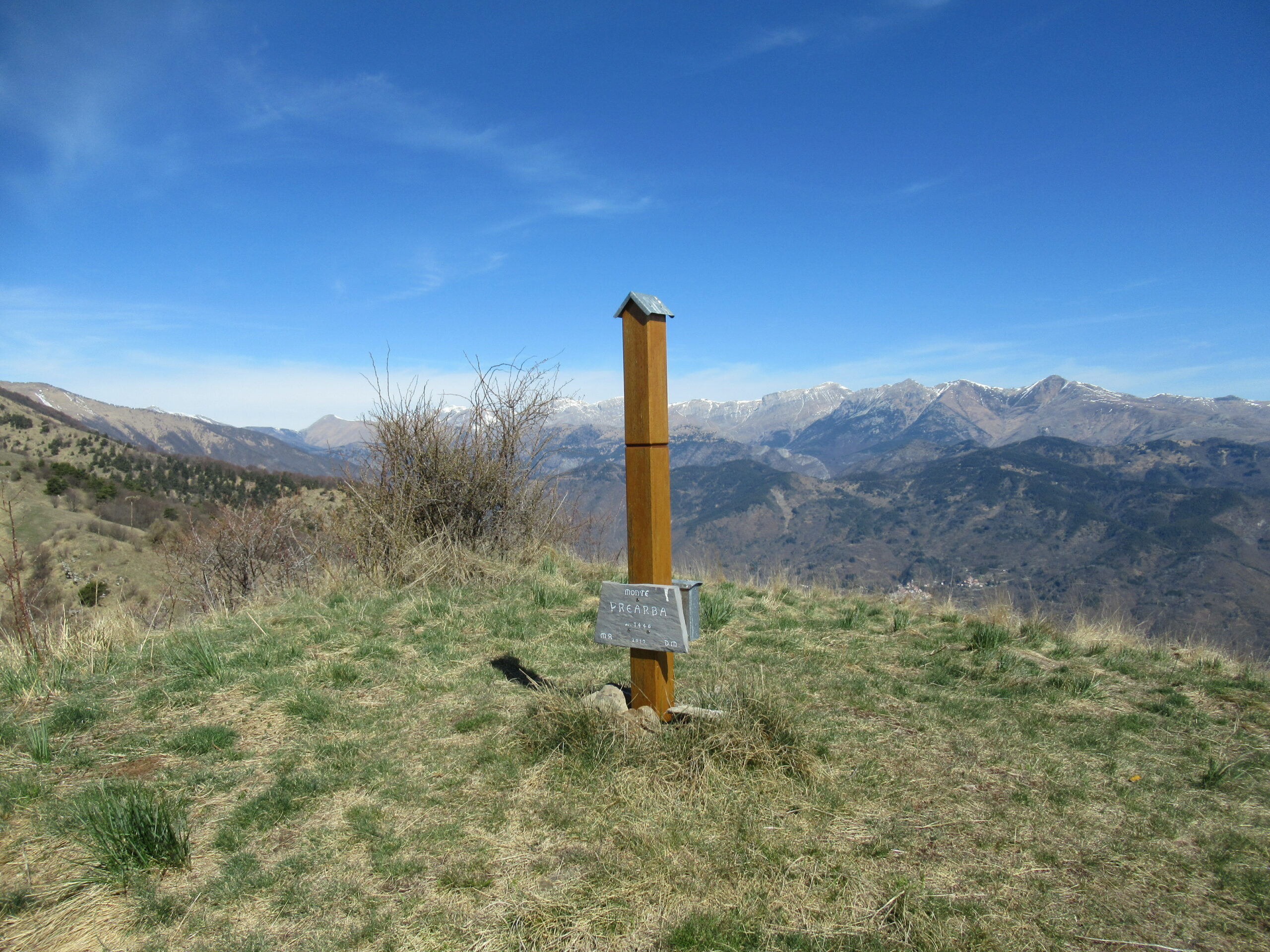 Con partenza dal Ponte dei Passi (m.747), siamo saliti come itinerario e dopo il ponte a salire verso dx per la bella mula tra antiche costruzioni ormai in abbandono, arrivando nei boschi soprastanti dove sparisce in piu’ punti ma grazie ai segnavia non ci si puo’ sbagliare e dopo altra salita eccoci sulla sterrata dell’acquedotto (palina). Qui la seguiamo verso dx con lungo tratto pianeggiante per arrivare al bivio e lasciata la sterrata segnata per Case Bueleo e Rezzo da dove si puo’ anche salire (piu’ lungo), siamo saliti su quella di sx che con salita tortuosa ci ha fatto prendere quota fino ad arrivare alla presa dell’acqua e li dopo un tratto di sentierino al limite del bosco, siamo saliti direttamente sul costone erboso e per il quale ad arrivare sul Monte Prearba (m.1446). Da qui con ottimi panorami e una bella giornata, proseguiamo per il panoramico crinale e dopo aver superato il Monte Bisciaire e il Poggio Pian del Latte, eccoci ad arrivare in vetta al Monte Monega (m.1882) dove pranziamo. Con sempre tanto sole, iniziamo la discesa per la panoramica cresta sud e le sue cimette, arrivando cosi’ al Passo della Mezzaluna e li subito per sterrata, siamo scesi alla malga (taglio tra i pini) e dopo un breve tratto a dx, l’abbiamo lasciata per sfruttare gli evidenti tagli e ritrovandola in piu’ punti, per poi dal tornante (palina) a scendere sulla mula segnata e rapidamente a perdere quota fino in fondo per superare la frana su sentiero e dopo aver attraversato il ponticello precario rieccoci all’auto terminando la stupenda gita ad anello svolta con Vittorio e Ornella. Buona Montagna!
