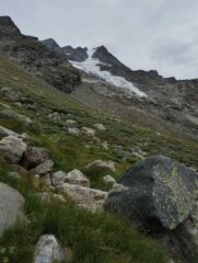 Visto due enormi stambecchi che combattevano sul filo della morena.