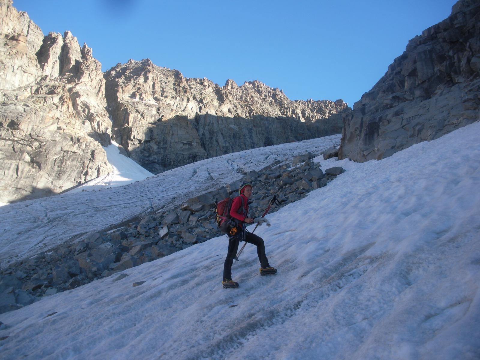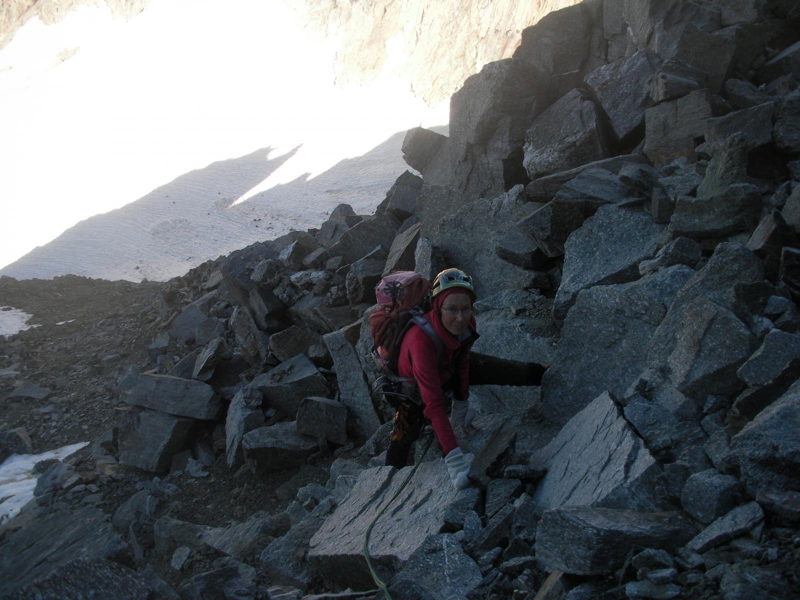 A nove anni di distanza stesso periodo, ghiacciaio ancora piu’ striminzito. Pendio finale allora ben ammantato di neve, ora un’immane landa di infidi sfasciumi faticosi da superare. E’ indubbio una gita dal sapore d’altri tempi, riservata a una sempre piu’ ristretta cerchia di appassionati di questo genere di gite esclusivamente per amatori..e a seguire poi.. In giornata dal Teleccio in compagnia dell’allegra ed entusiasta socia Tiziana.