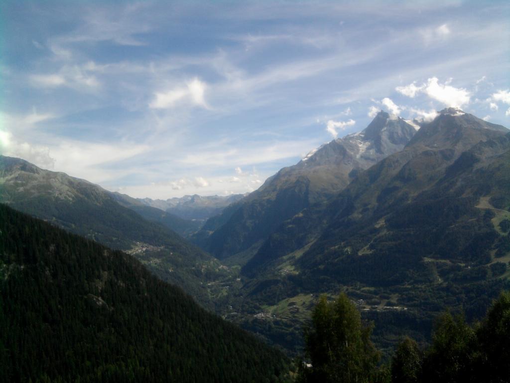 Dalla cima vista sul Bianco che ripaga di tutte le fatiche. Discesa fino a Pre Saint-Didier e poi falsopiano fino ad Aosta dove c’è da spingere.