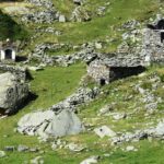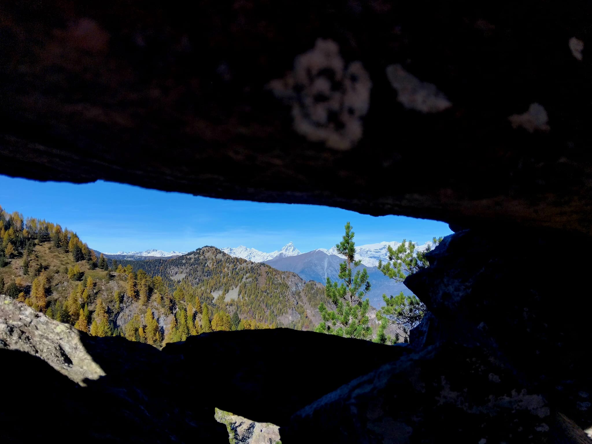 Attraversare per parecchie centinaia di metri fino ad un intaglio, con un bellissimo ultimo colpo d’occhio su Dondena e l’alta valle, poi sempre a nord proseguire fino a Plan Fenetre; qui si puo’ scendere direttamente a Rosier, oppure proseguire in piano fino alla chiesa di San Anna, e un po’ oltre, seguendo i segni gialli sulle pietre per terra, trovare l’indicazione del sentiero di discesa, difficile da seguire perche’ poco frequentato;