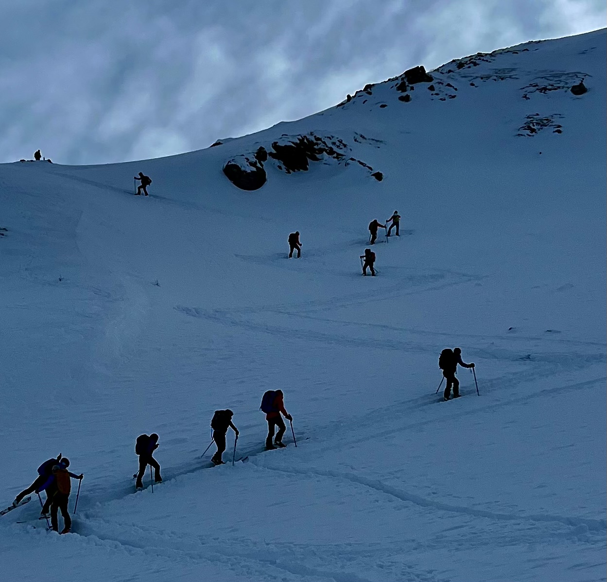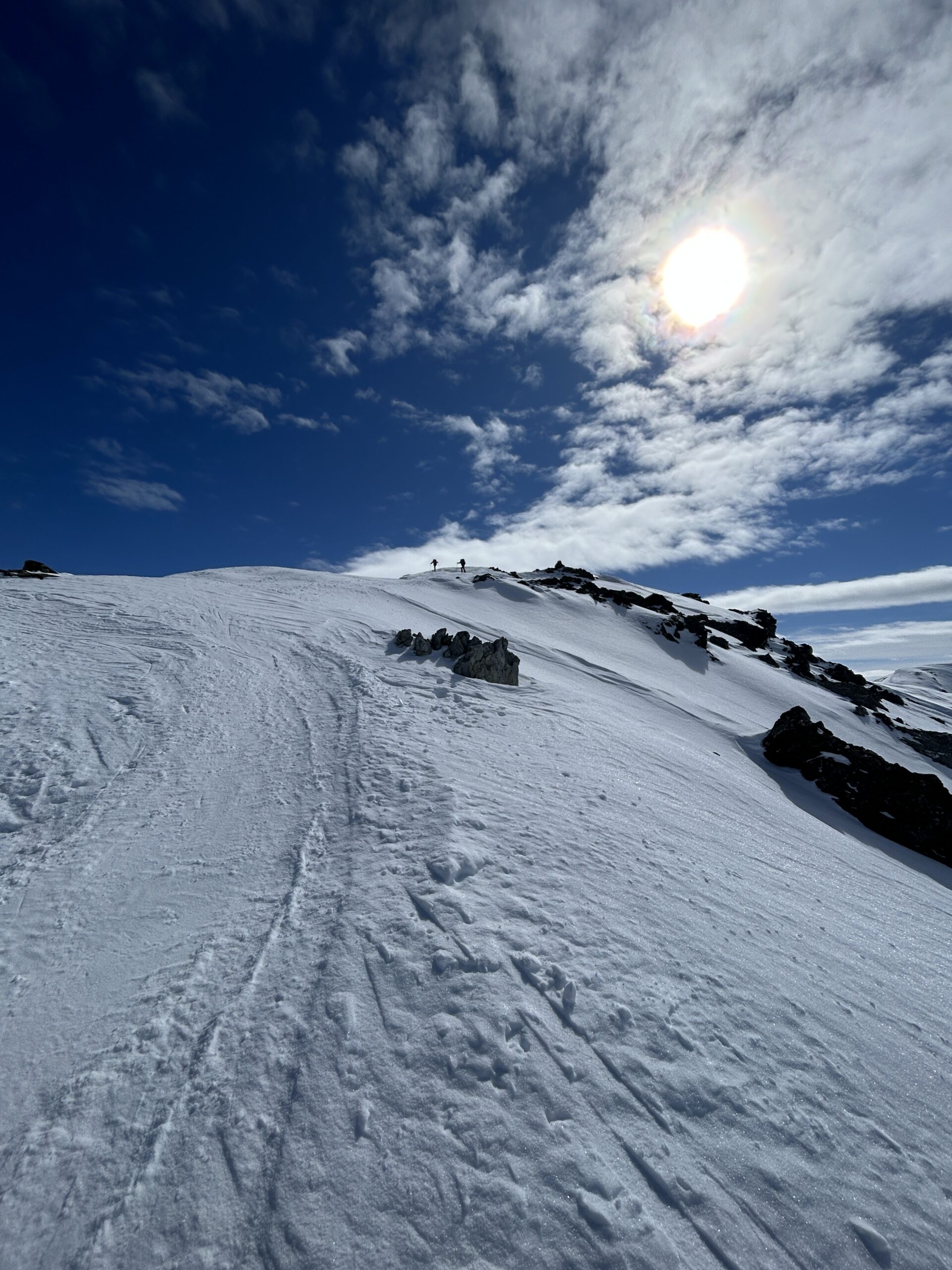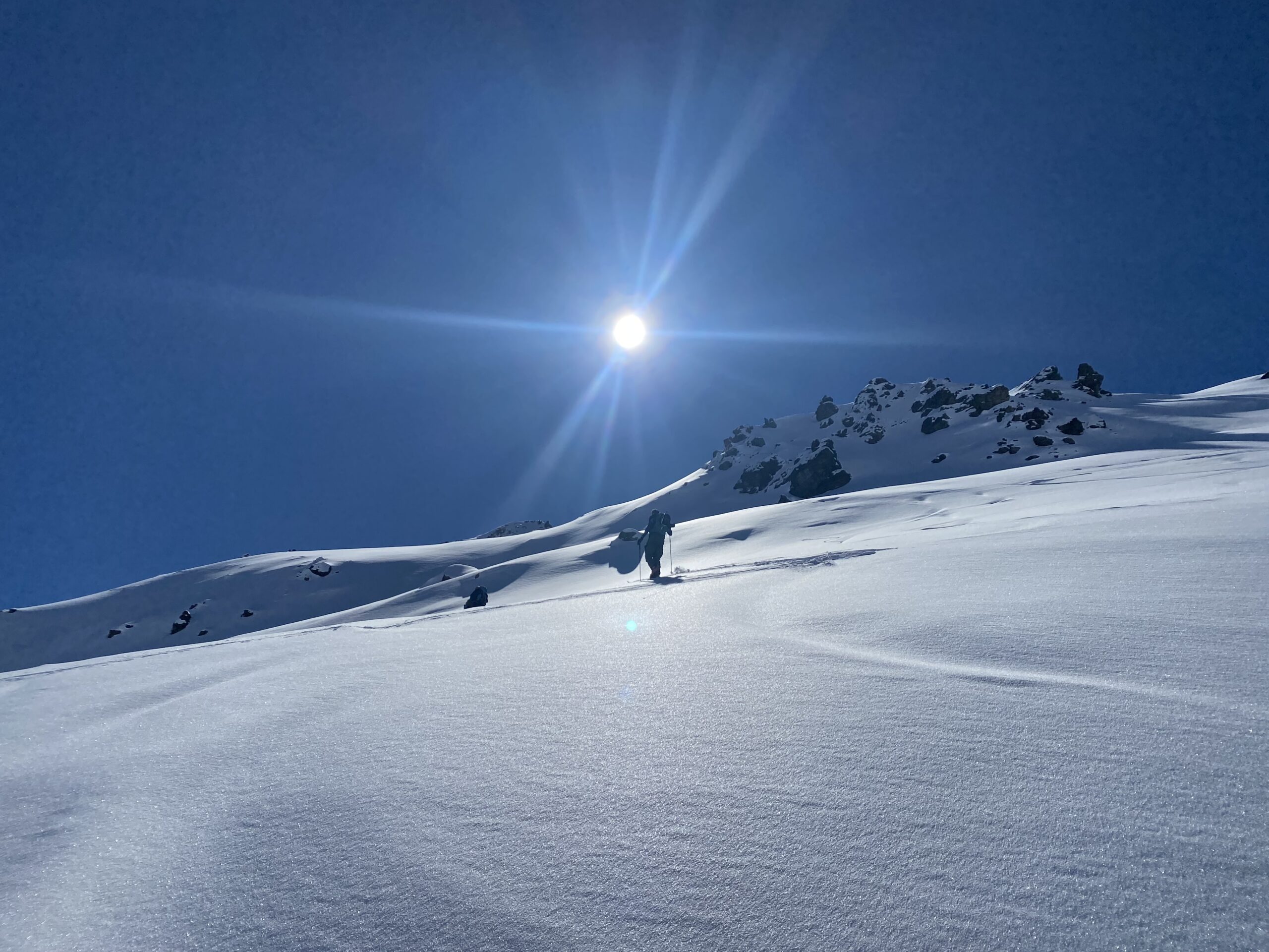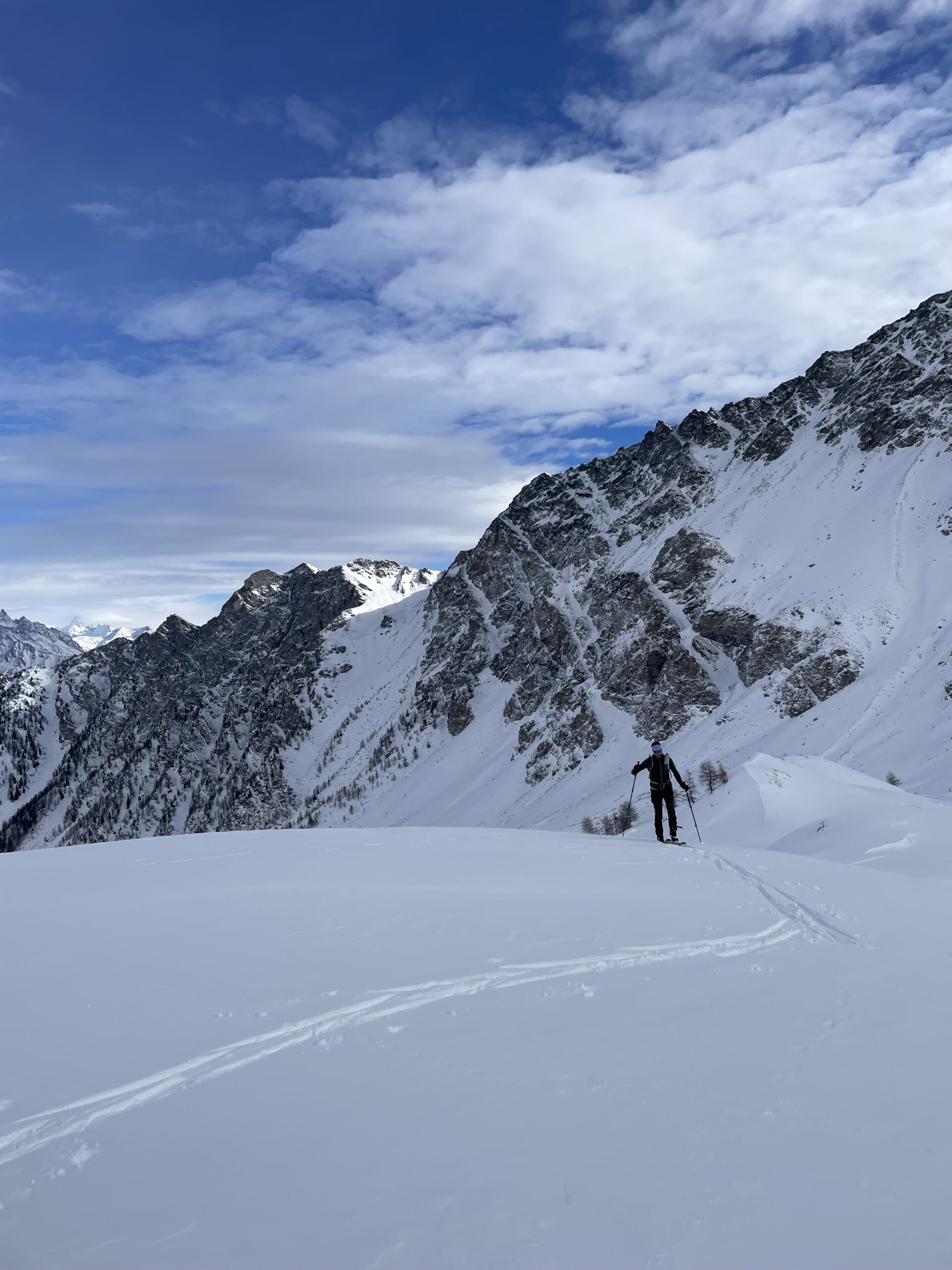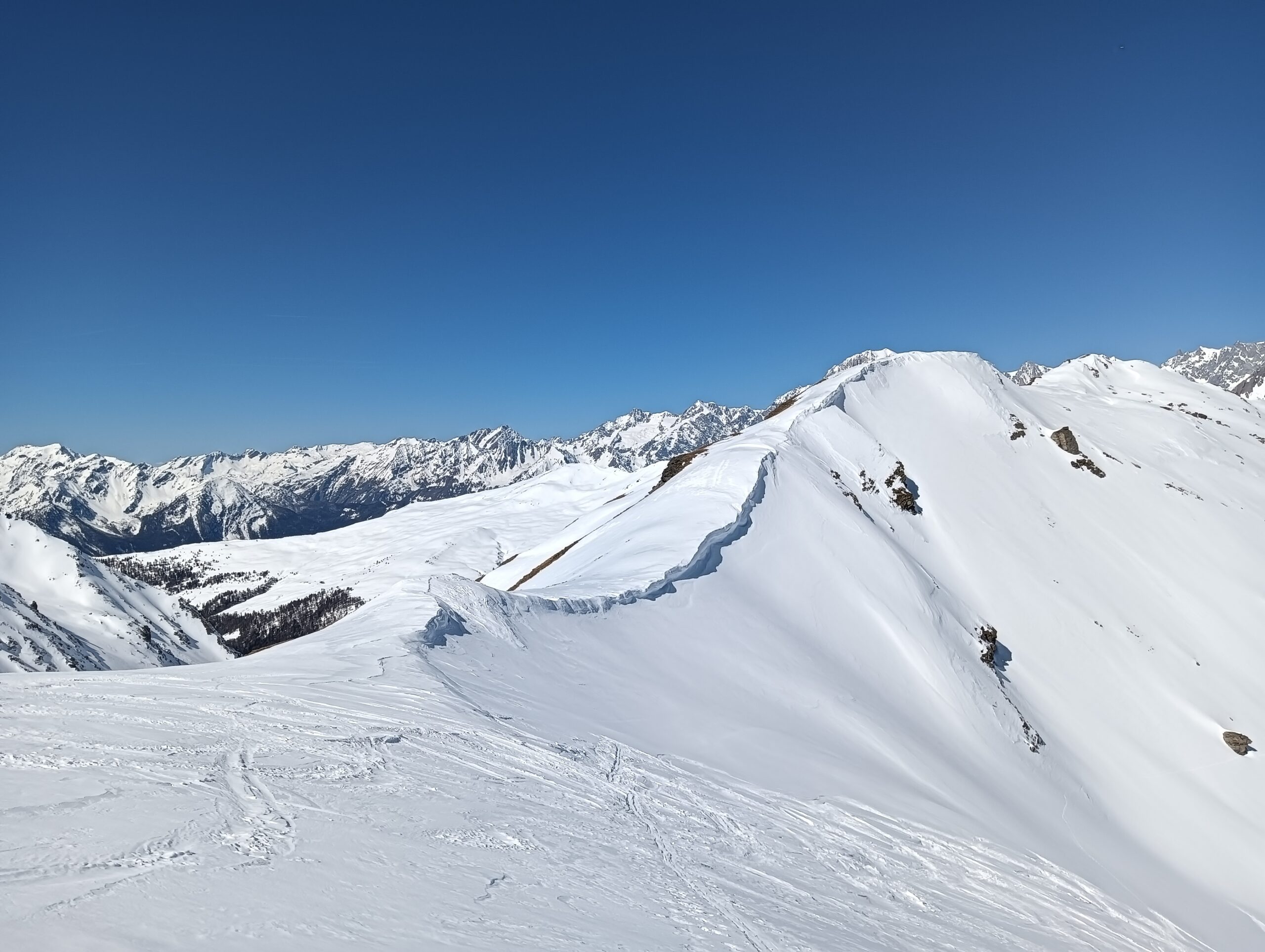 I quasi 3000 metri di quota e l’esposizione a nord permettono il mantenimento di una buona qualità del manto nevoso nell’intero arco della stagione sci-alpinistica.
