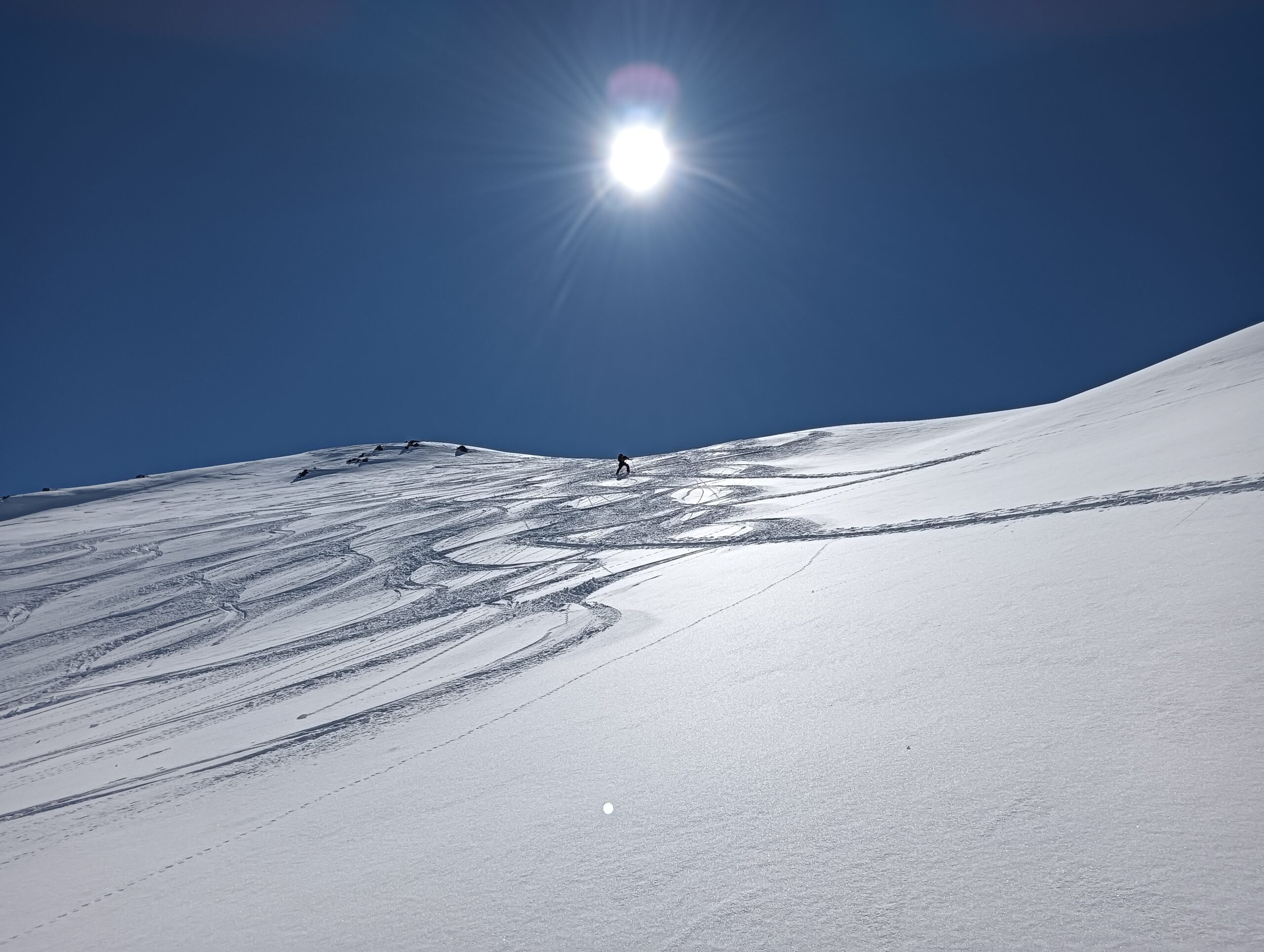 Poi si rientra sui pianori sottostanti con la possibilità di andare alla ricerca della linea di discesa migliore.
