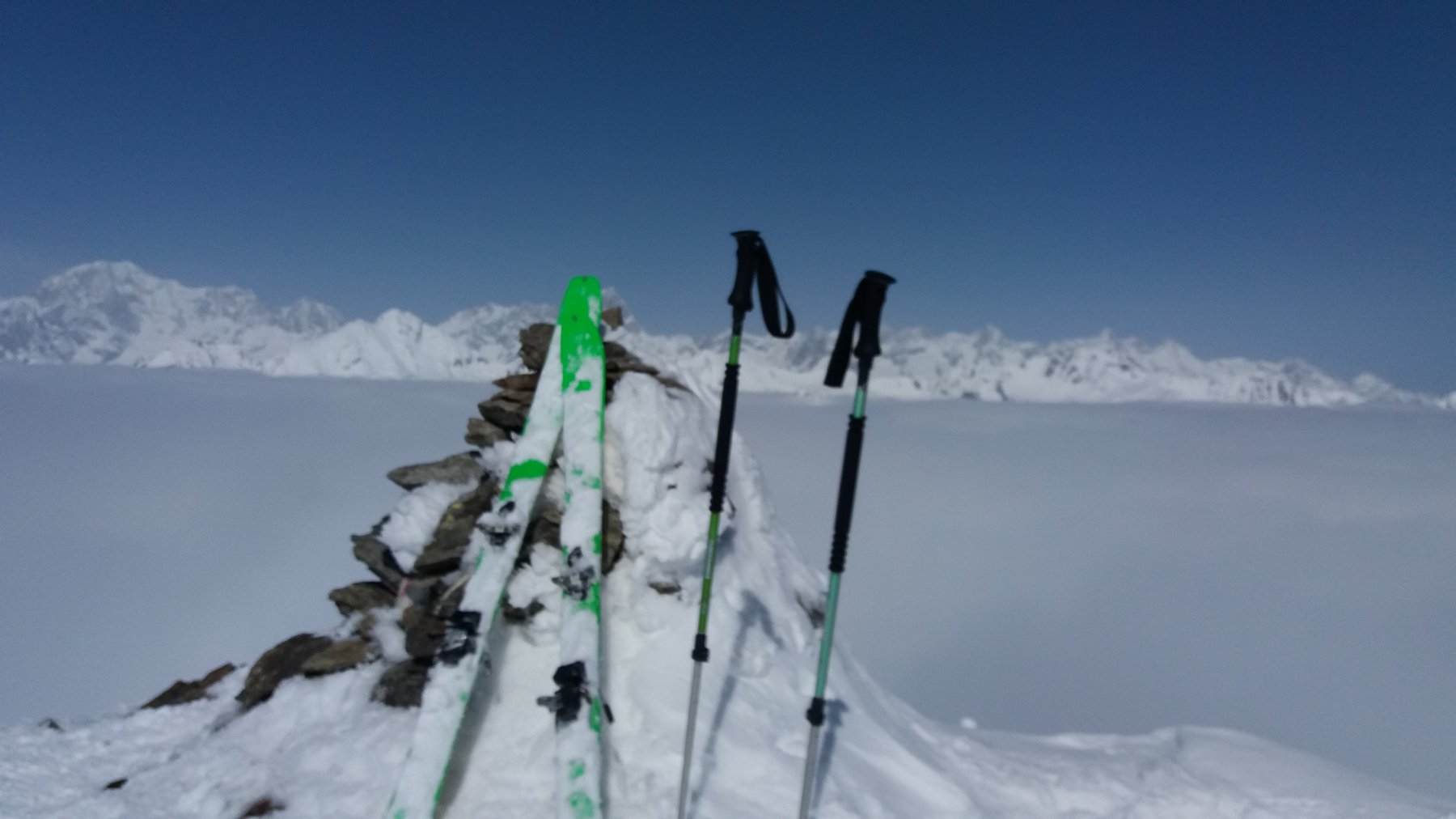 Il Vertosan si è confermato una gran bella gita. Giornata abbastanza calda, con 6 gradi al parcheggio, ma poco soleggiata. La visibilità però è sempre stata buona. Saliti senza problemi seguendo la traccia preesistente e senza utilizzare i rampant, considerato l’ottimo grip del manto nevoso. In vetta abbiamo assaporato il tepore del sole sovrastano un mare di nubi. Discesa ottima con fantastica neve farinosa nella parte alta e divertente primaverile in basso. Solo nella parte mediana la neve, non ancora trasformata, era un po’ pesante ma comunque ben sciabile. Con Luca, Danilo e il clan dei Casalesi.