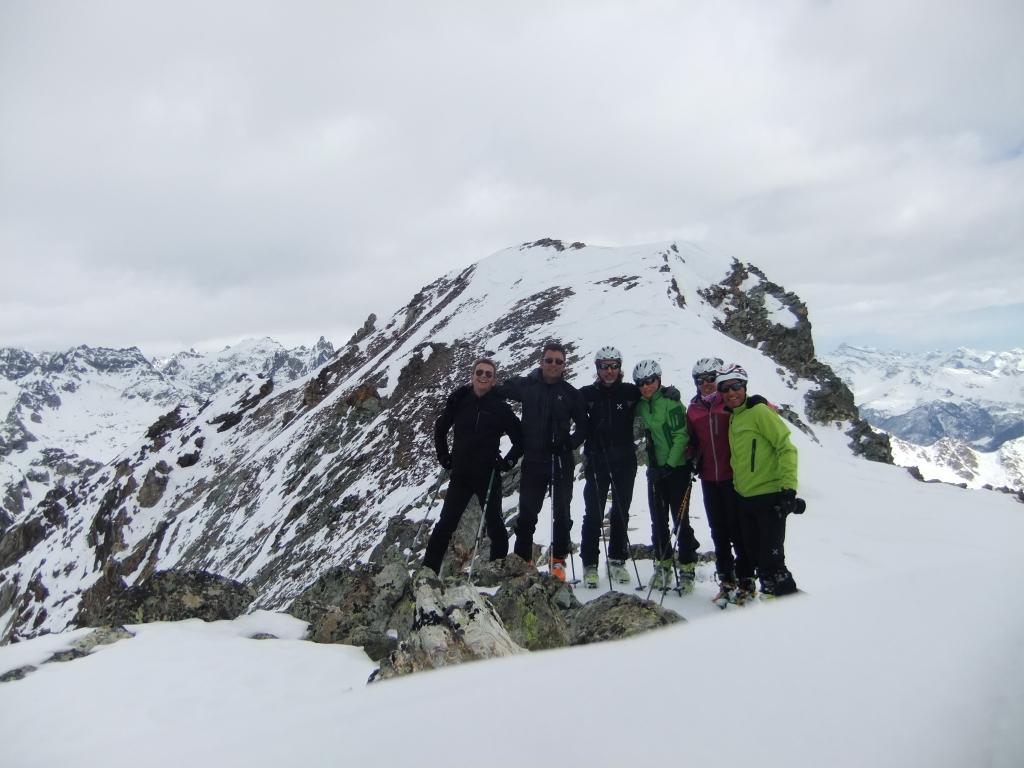 Nella parte ripida finale necessari i ramponi, in discesa la parte alta presenta neve dura compressa dal vento mentre la parte intermedia presenta crosta non portante.