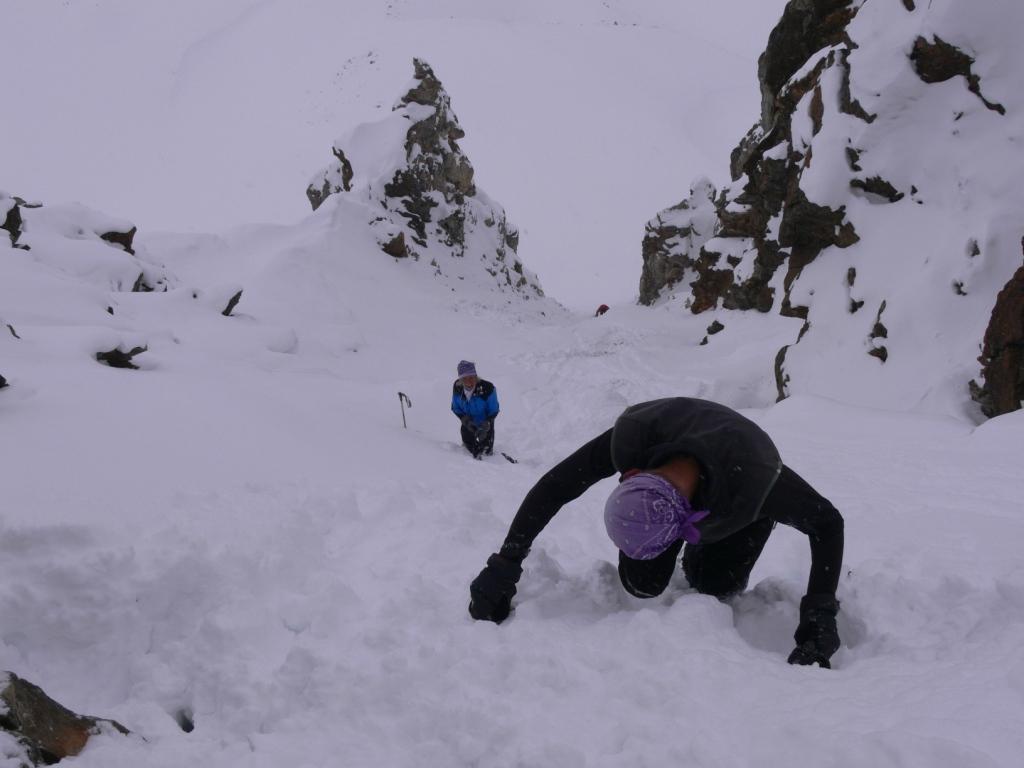 Percorso il canale con ramponi (picozza comoda) fino alla punta senza difficoltà rilevanti.