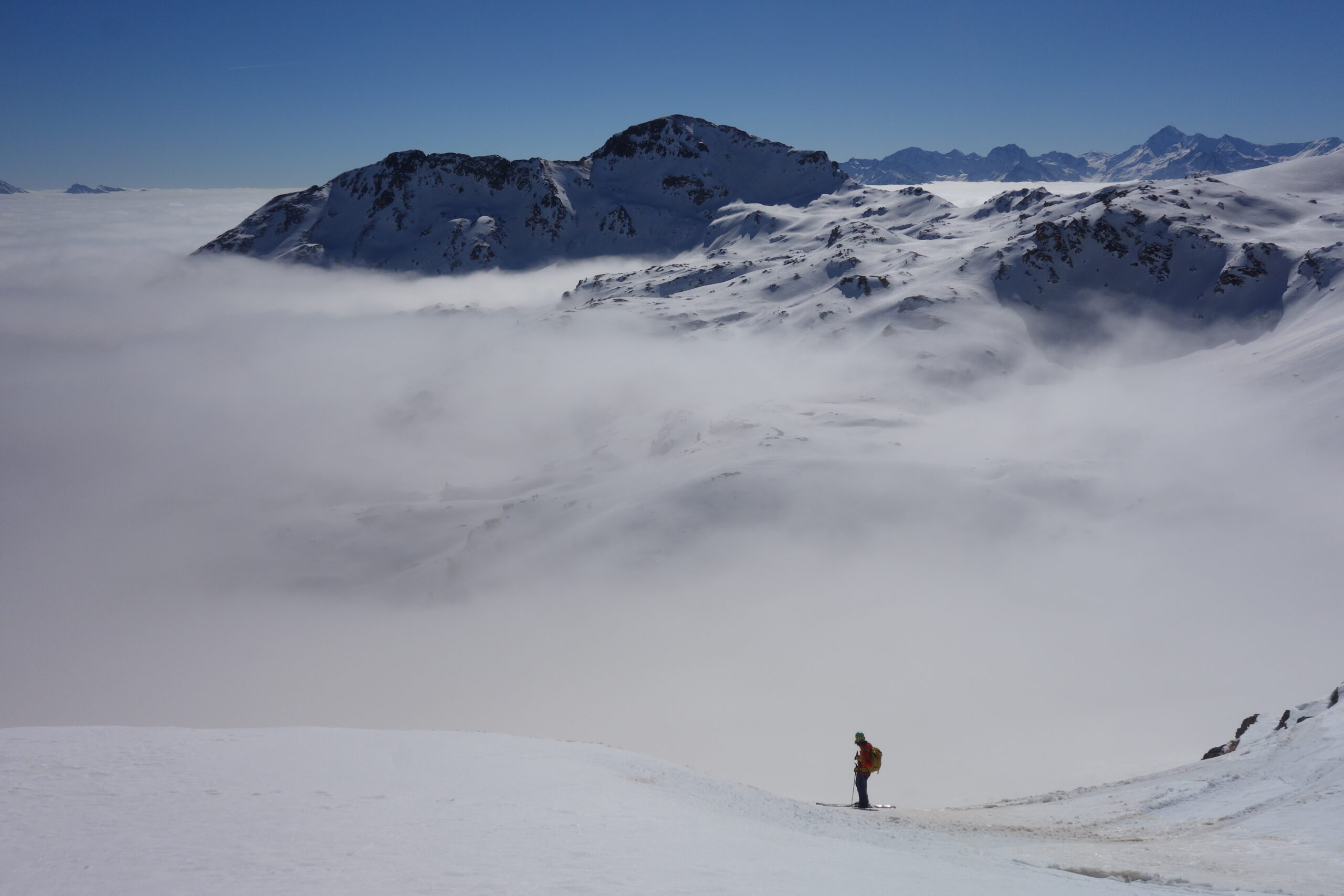 Noi abbiamo risalito a piedi il ramo di sx e siamo scesi dalla quota 2970, volendo si può scendere anche dalla quota 3015 ma l’esposizione diventa SW