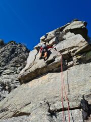 Bellissima via, chiodatura mista a chiodi e spit perfettamente posizionata (non avevo dubbi con la firma di Fiorenzo), roccia strepitosa.