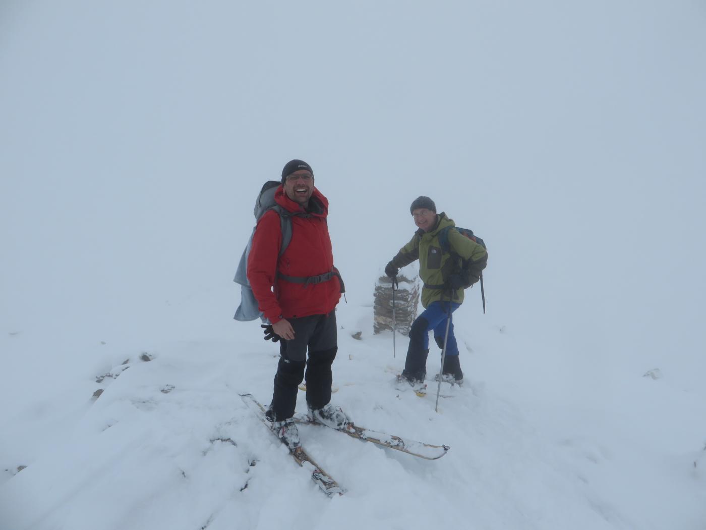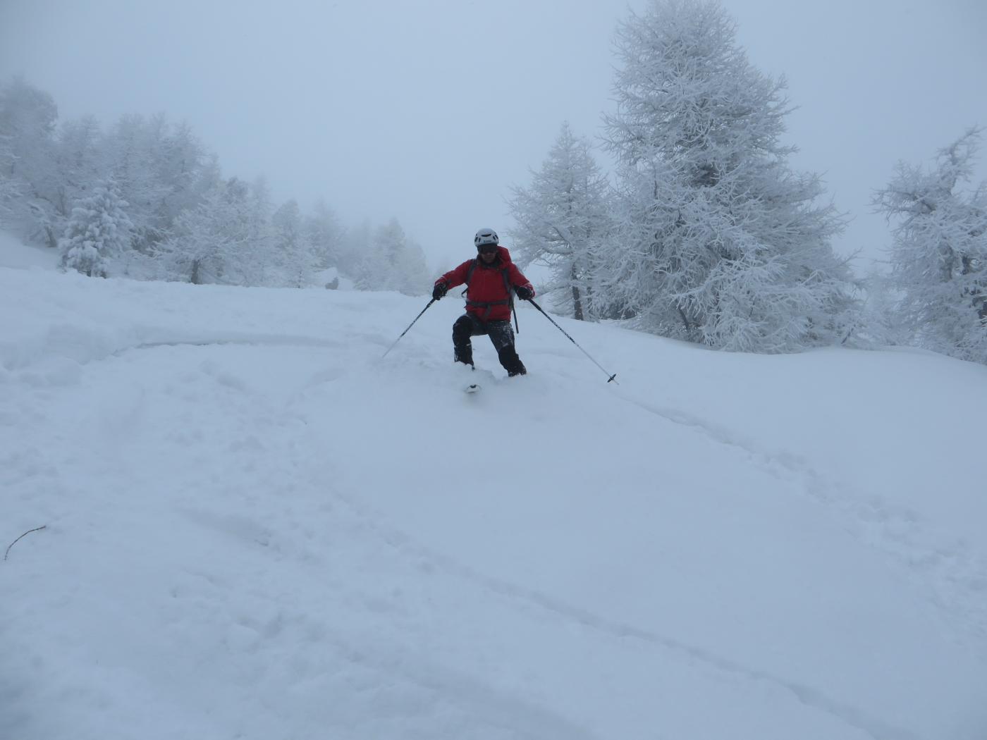 Saliti a Gressoney per il col di loo abbiamo rinunciato. Sotto una fitta nevicata, almeno 60 cm di neve sarebbero stati un incubo sia in salita sia in discesa sulla lunghezza e sulle pendenze dell’itinerario. Migrati al Paglietta abbiamo trovato meno neve fresca ma abbastanza per divertirsi, e molto,nel bosco in discesa sul Menouve. Poca neve invece da Prailles fino al bosco, appena sufficiente oggi, completamente insufficiente in alto fuori dal bosco e fino in cima dove sotto i 30cm di neve fresca le pietre si sentivano eccome sia in salita sia in discesa (forse conveniva togliere gli sci almeno in discesa in alcuni punti). Il gruppo di sciap che ci anticipava ha spellato dopo il bosco noi abbiamo proseguito in solitaria in un nebbione fitto fitto fino in cima. Con Enri e Simone, altra bella giornata, grazie.