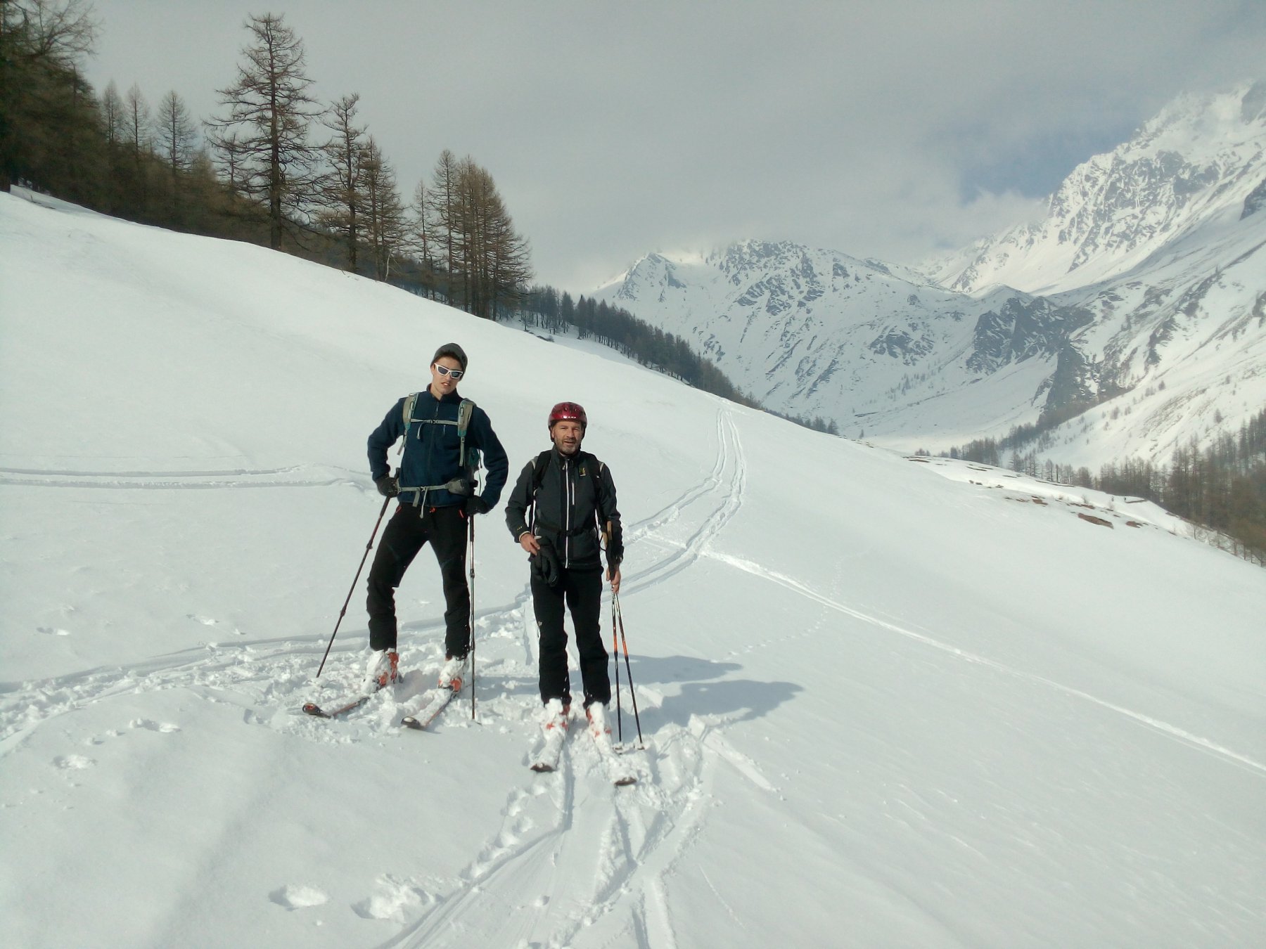 Abbiamo scelto il versante est per la discesa dove le condizioni della neve si