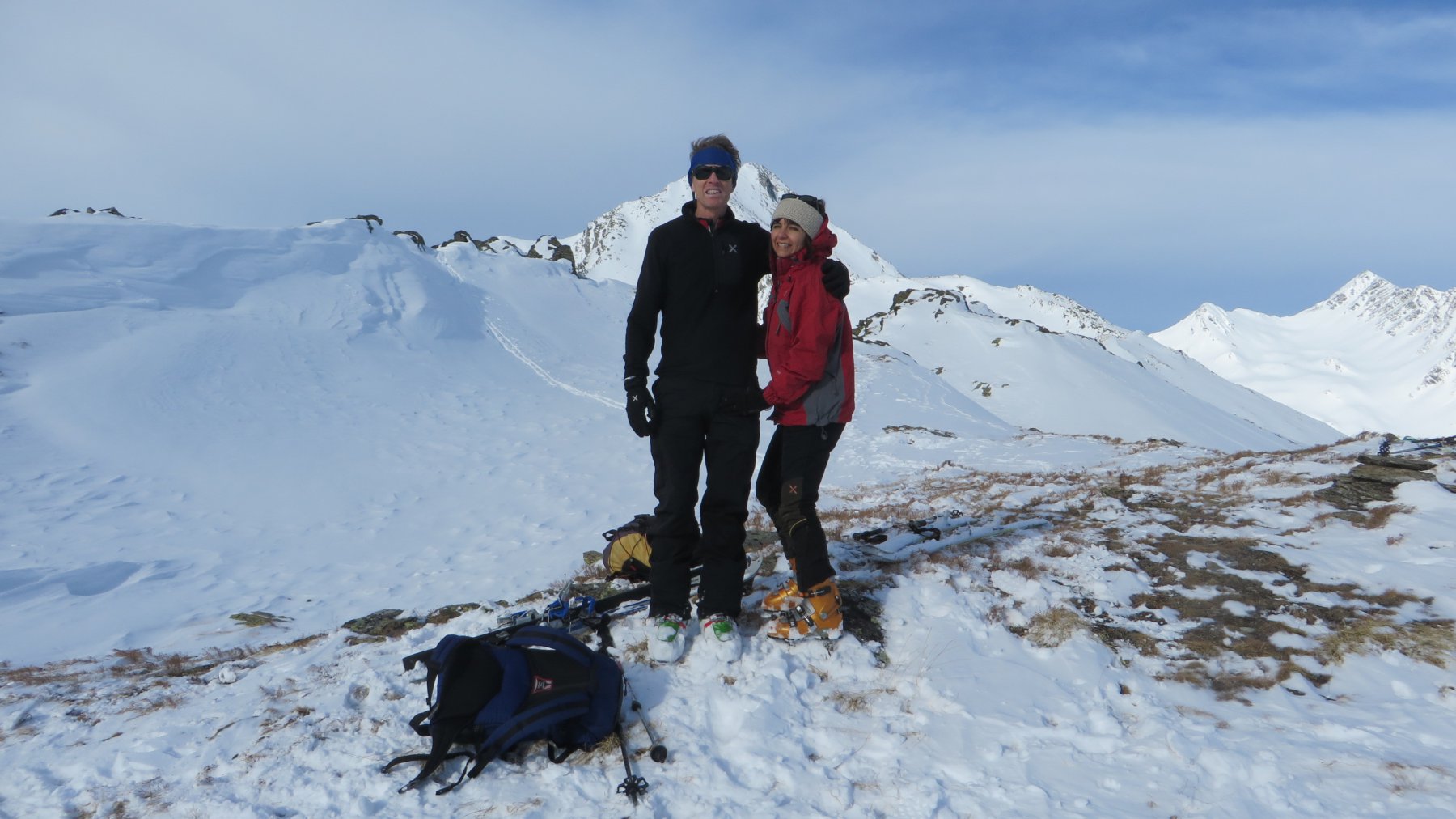 Gran caldo, zoccolo e neve polenta. In alto occhio ai sassi. In compenso bella giornata limpida e soleggiata. Pochi altri skialp in giro. Scesi dalla via di salita ma forse era meglio scendere a sx per il vallone di manoeuve. Ultima gita dell’anno! Auguri! ‘Ella giornata con la Pina, Marta e Enri.