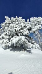Proprio solo in partenza non c’è fondo sotto la neve nuova. Nel bosco neve pesantuccia da tracciare. Uscendo dal bosco (dove faceva decisamente caldo), soffiava vento fastidioso. In alto ci sono zone erose, croste e zone con sastrugi…ma appena ci di butta nel lato est…neve molto bella fin quasi al rientro della poderale.