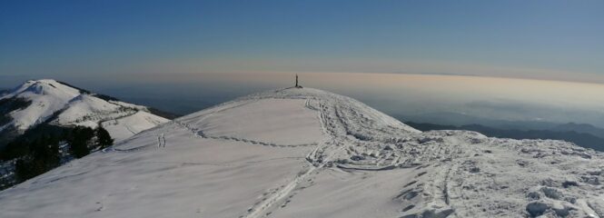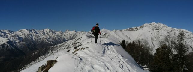 Partenza dal sentiero dei narcisi e saliti fino al colletto Colma Bella. Pista ben battuta calzato i ramponcini ma si poteva salire senza niente. Ultimo tratto di cresta spettacolare vista la bella giornata e la neve fantastica. Ritornati per la stessa via. Messe ciaspole nell’ultimo tratto.
