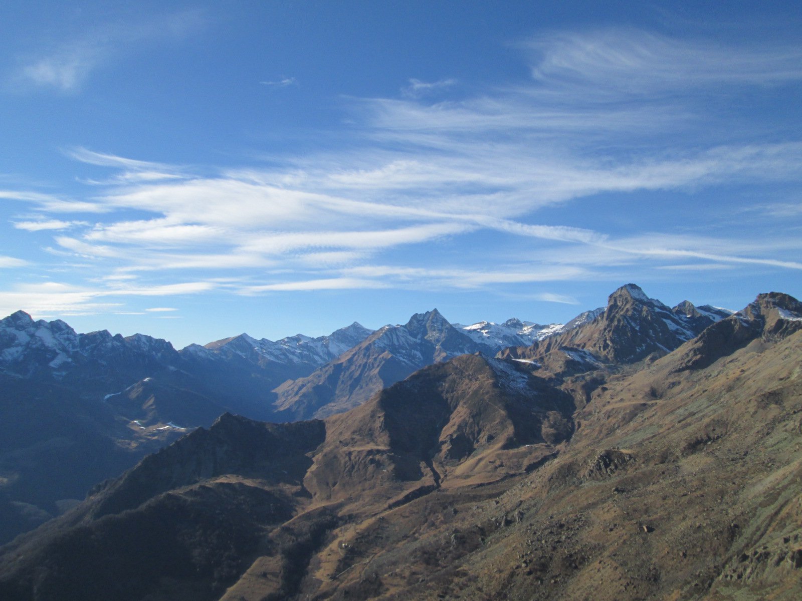 Bella escursione ad una cima poco conosciuta, non troppo lunga ma decisamente interessante e non banale nel tratto di cresta; adeguata a mio parere la valutazione EE e, come detto da chi ha proposto la gita (che ringrazio!!!), da evitare assolutamente in caso di nebbia e con terreno bagnato o gelato. Prendendola con calma abbiamo impiegato circa 3 ore per la salita e 2 ore per la discesa. Giornata come detto molto calda, con clima da Ottobre più che da fine dicembre…non si pesta neve, solo nei versanti a Nord e sopra i 2.000 metri ci sono alcune piccolissime chiazze di neve dura, sempre evitabili…