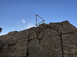 Noi abbiamo mancato il “nuovo attacco” perché ci siamo tenuti troppo a sinistra dello smottamento, non riuscendo più a ridiscendere nella conca creata dalla frana, abbiamo aggirato in alto su sfasciumi ed attaccato le rocce alcuni metri sopra il fronte della frana. Poco male, dopo poco ci siamo collegati agevolmente alla via di salita. Noi abbiamo percorso in conserva protetta (utili 3/4 friends fino all’1 bd e fettucce) tutta la cresta ed i torrioni facendo solo due tiri dalla targa sotto il saint Robert e dalla via della lepre. Sufficiente corda da 30mt per la calata dopo il saint Robert.