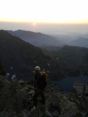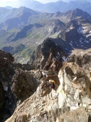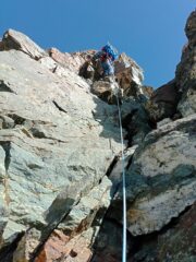 Ho percorso la cresta con mio figlio che ringrazio per aver reso possibile questo sogno e per le sue ormai consolidate capacità alpinistiche. Il giorno in cui l’abbiamo salita noi non sono salite altre cordate. Meglio comunque sempre sincerarsi (lo abbiamo fatto al Quintino Sella) quanti intendono percorrere la via a causa del materiale instabile che si può far cadere o ricevere in testa.