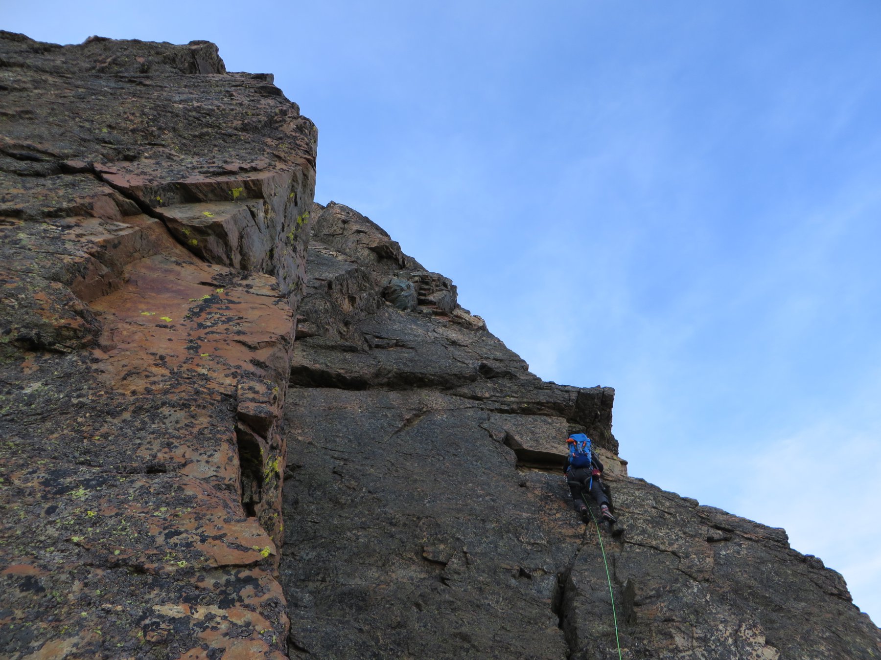 I pionieri salivano e scendevano questa via con scarponi e senza corde, consigliate scarpette e calzettoni (siamo a nord), corde, friend, fettucce ecc...la via è sovente verglassata!