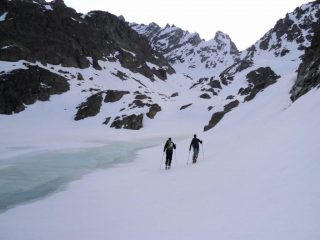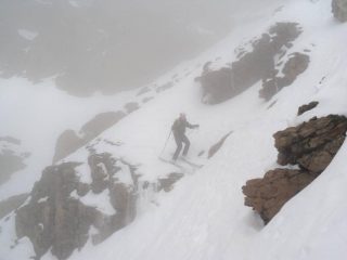 grazie alla traccia dei ragazzi che lo hanno fatto domenica oggi con i maestri del ripido Jerome e Davide è stato molto più facile e veloce.Partenza notturna da Castello alle 3 in punto, abbiamo cominciato la discesa alle 10 un pò di nebbia ci ha infastidito e mantenuto la neve bella dura fino al fondo.