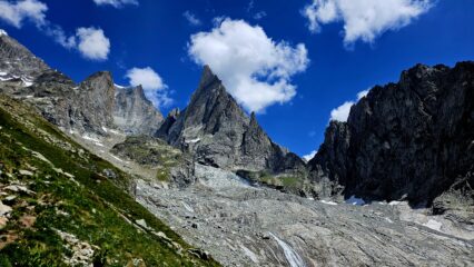 Rifugio poco frequentato, gestori ultragentili, vista sulle tre grandi creste del Bianco (Brouillard, Innominata e Peutery) e sulla Aiguille Noire impagabili.
