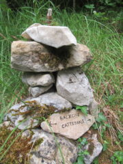 Via completamente richiodata, seguendo quasi nella sua interezza i vecchi spit roc dei primi salitori, un poco spostati a dx e non facilmente raggiungibili. Soste tutte unite con cordone, ma senza anello di calata. Meglio scendere in doppia sulla via accanto (a sx, faccia a monte).