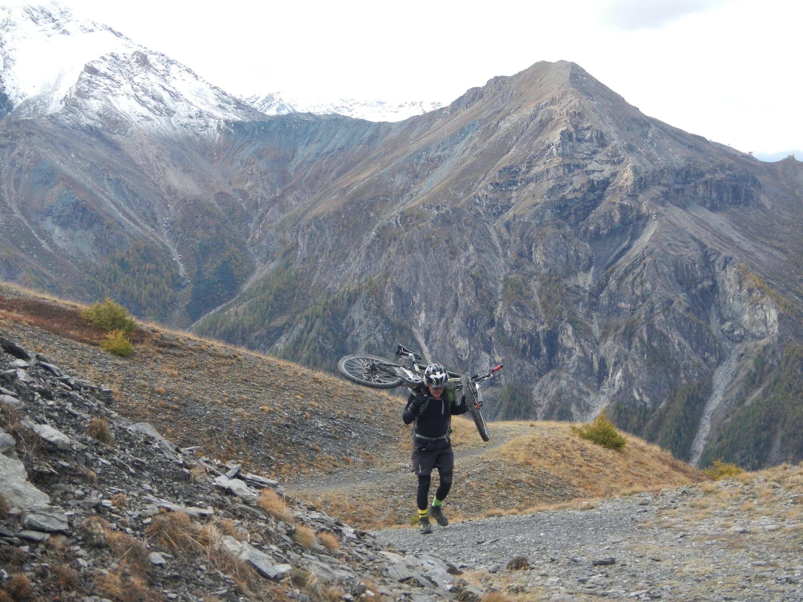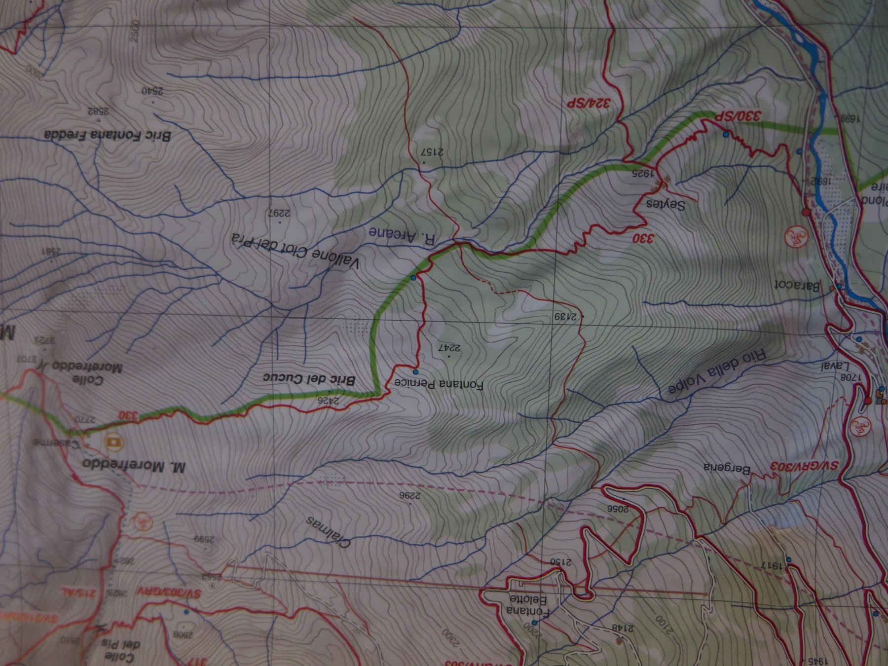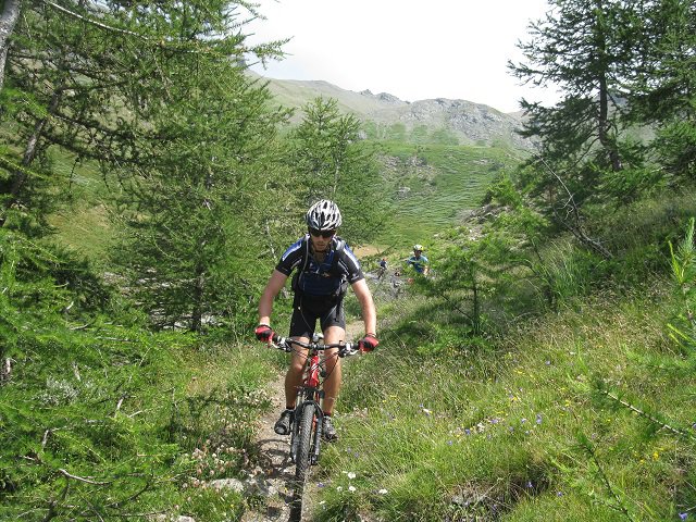 Ultima opzione, da verificare anche questa siccome all’interno del parco Val Troncea è vietato percorrere i sentieri in bici, consiste nello scendere per il sentiero 330 sulla borgata diroccata Seytes. Secondo la cartina Fraternali 2 (stampata anche su un cartello posto sulla strada per Laval percorsa in salita) il sentiero passa quasi tutto sul confine o fuori dal parco, in ogni caso siamo border line quindi a voi la scelta! Questa discesa è molto ripida e tecnica, con tratti non ciclabili, l’ambiente però è meraviglioso!