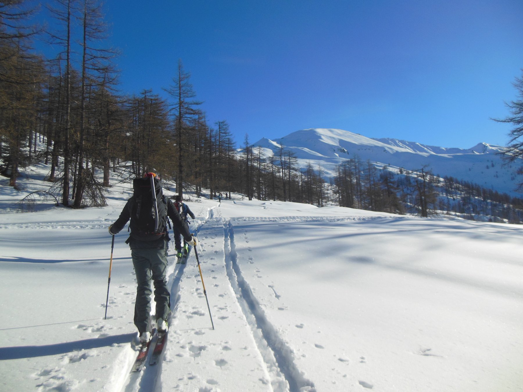 Fatto lo stesso tragitto della gita inserita sotto…Saliti inizialmente sulle piste sotto la seggiovia di Pattemouche e poi ci siamo inoltrati nel bosco su buona traccia, mantenendo sempre i piloni arancioni dell’impianto (non in funzione) sulla destra.