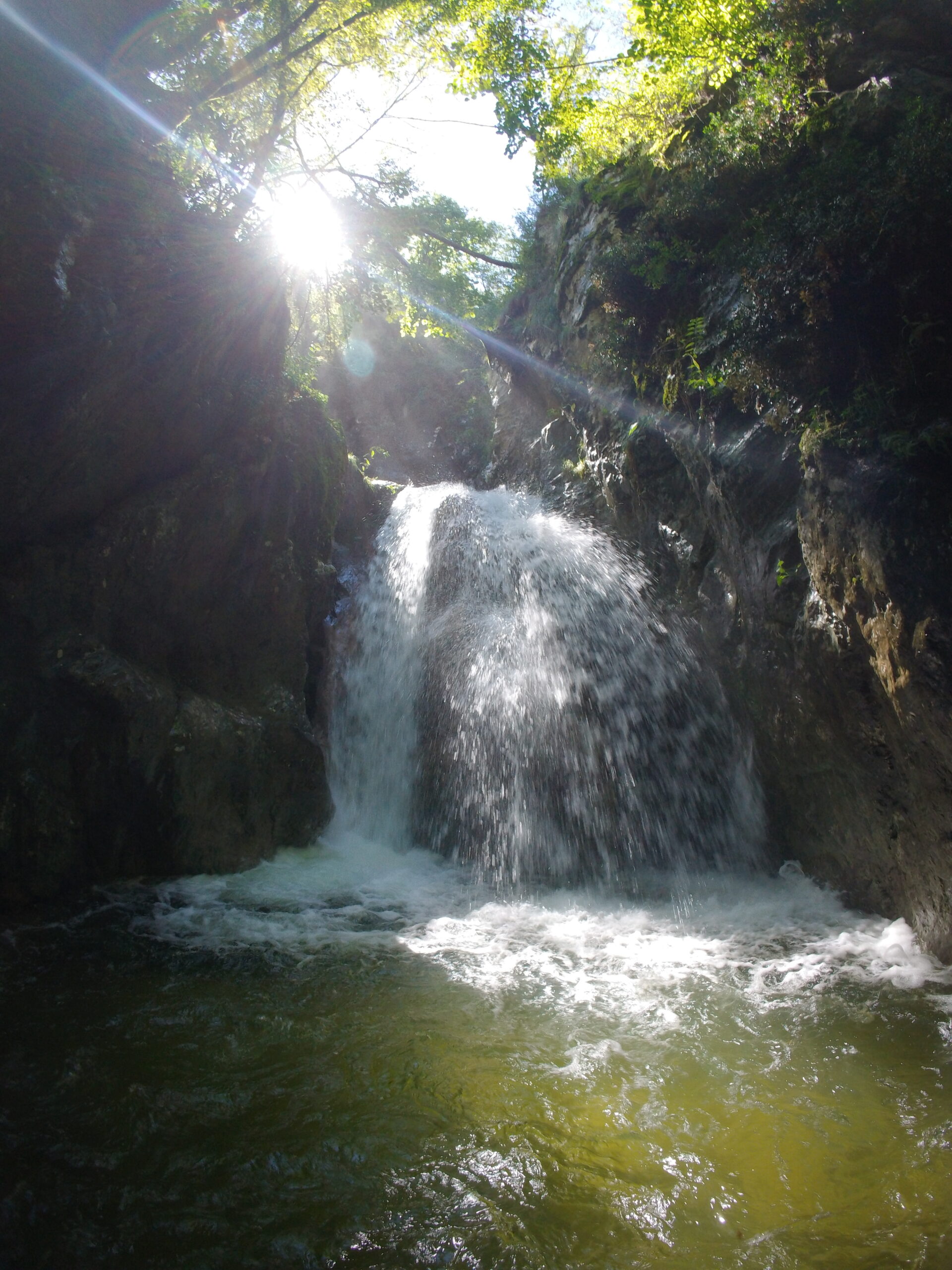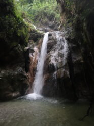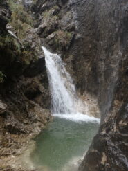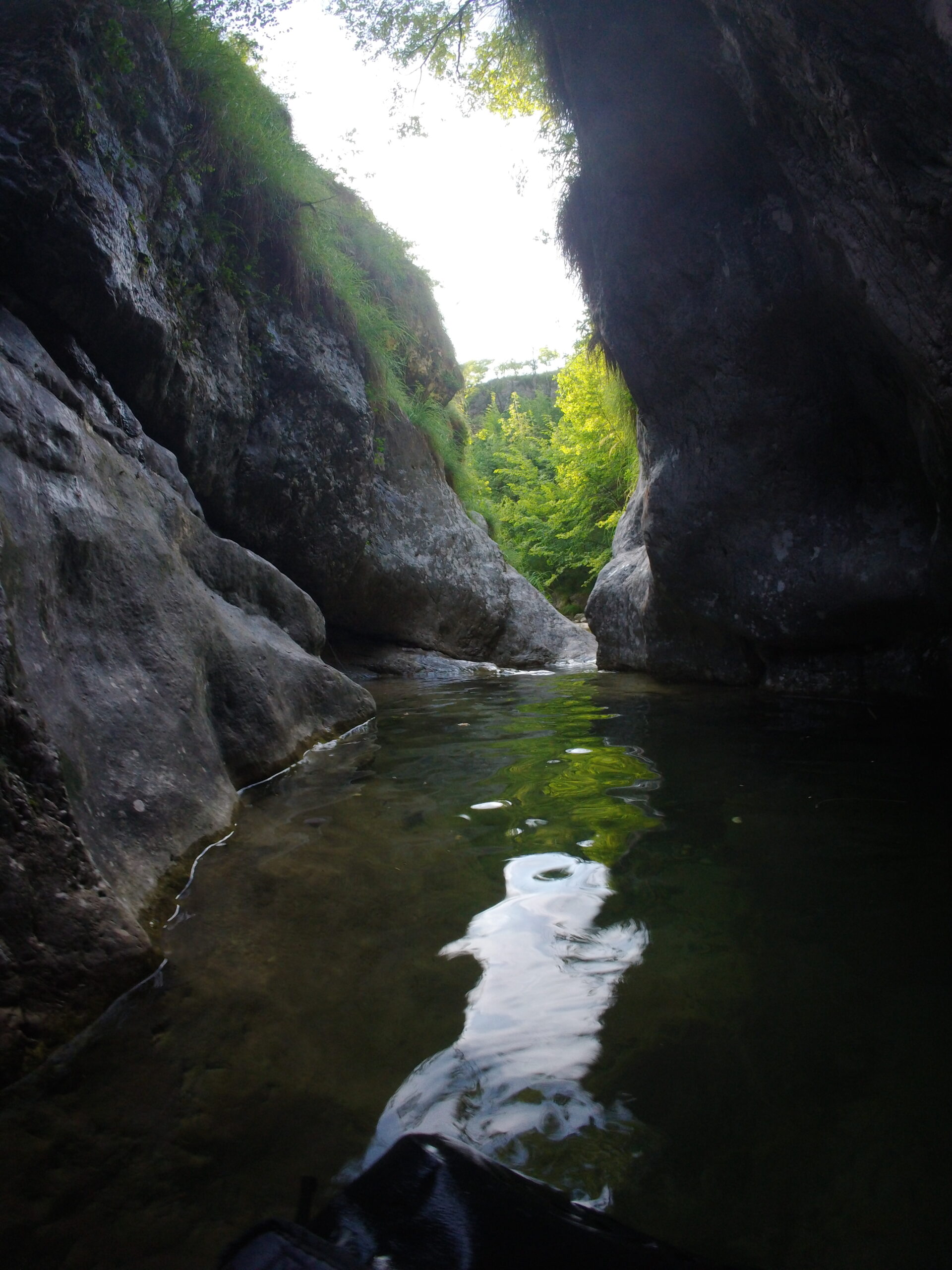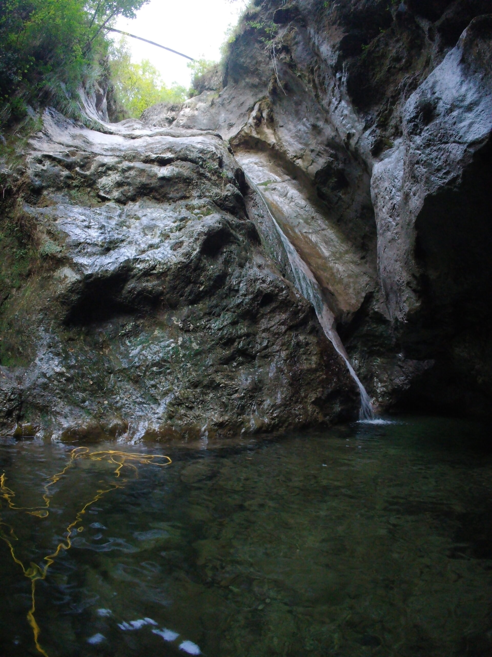 La seconda parte inizia a inforrarsi di più, la portata aumenta, e c’è anche qualche bella pozza le calate più alte non son mai tuffabili. Si prosegue con belle verticali mai troppo lunghe e qualche disarrampicata a cui porre attenzione, in ambiente calcareo e scivoloso ma bello. In questa parte si incrocia anche la prima via di fuga, sulla sinistra (indicazione su sasso).
