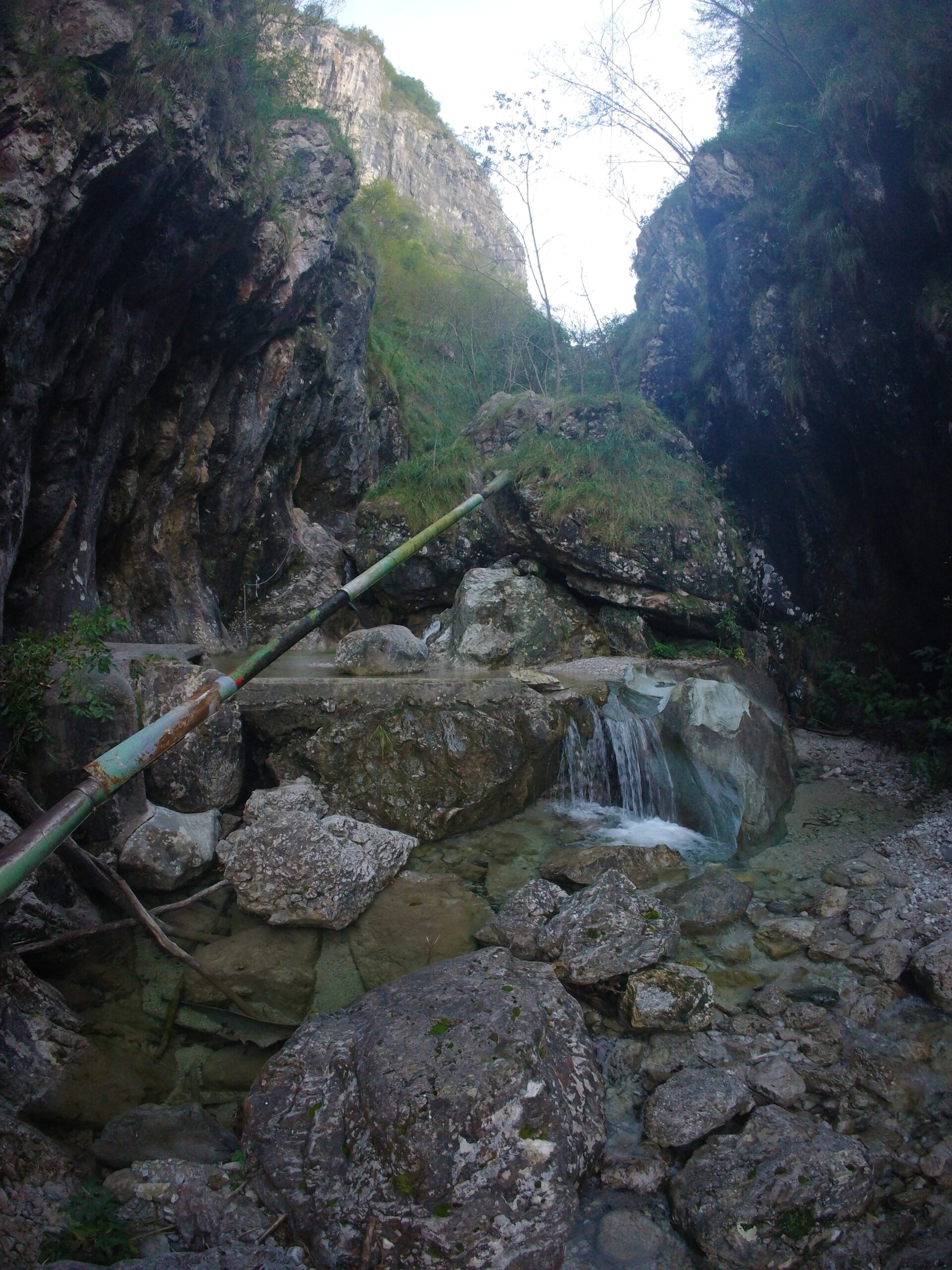 Si può in alternativa fare solo la parte bassa, scavalcando il cancello appena sopra al parcheggio (attenzione, proprietà privata) e seguendo un sentiero di servizio (anche via di fuga per l'integrale) che giunge fino alla parte della forra con la presa d'acqua.