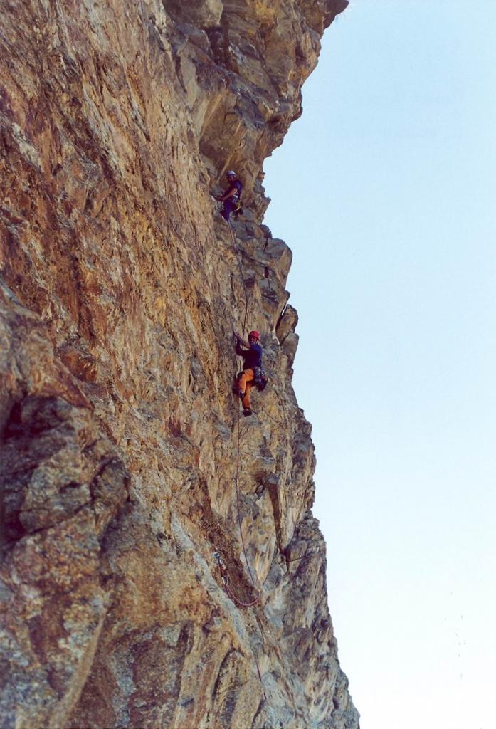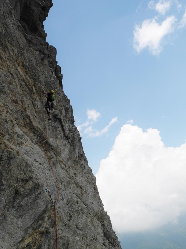 Si tratta di un’arrampicata lunga e varia, fra le più interessanti della valle (spettacolare la parte finale).