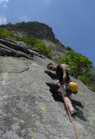 - L6) Proseguire fin sotto ad un piccolo tetto, alzarsi sulla placca sovrastante (passo di 6a+) e continuare su placche fessurate fino ad un terrazzino con pianta (5b)