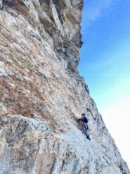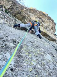 - L7) Spostarsi a destra, superare un diedrino (5b), poi scendere leggermente a destra e superare un diedro verticale (4c)