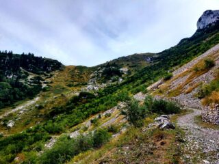 Dal Passo non è ancora finita, vi sono quasi 6 km per la Capanna Morgantini, di cui uno di discesa, ma la salita è meno ripida e il fondo generalmente buono (vi è un solo tratto da fare a spinta in quanto attrezzato con gradini). L’ambiente delle Carsene è spettacolare.