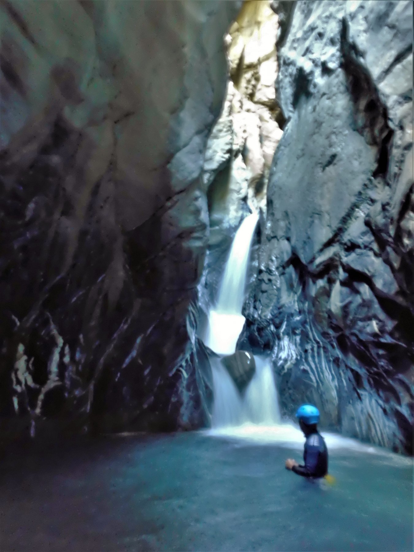 Grandioso canyon tipicamente Vallesano. Impressionante la parte centrale sotto il “Pont du Diable”. Noi abbiamo effettuato inconsapevolmente un uscita “avventurosa”, poco prima di quella comoda. Con Bresaola60.
