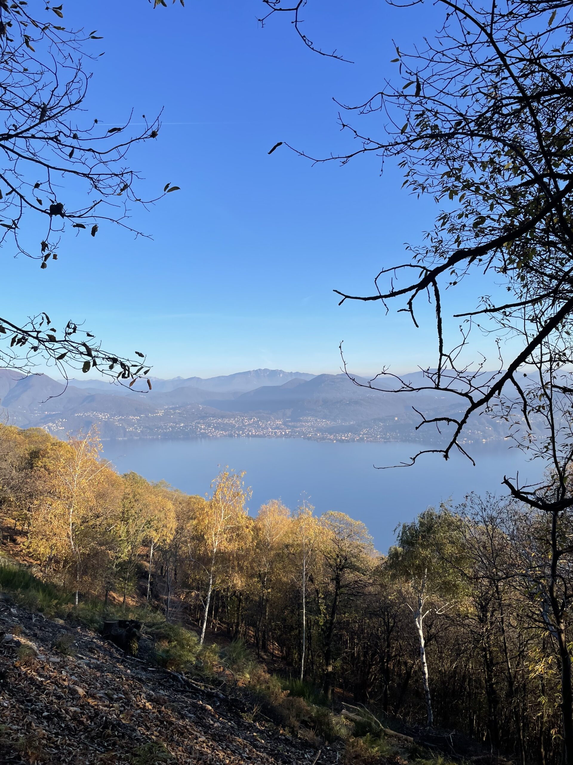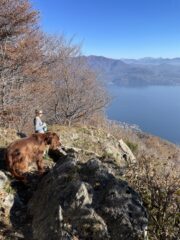 Seguendo i cartelli bianco-rossi e tenendo la sinistra (oppure a destra per il sentiero del Vertikal,non cambia molto) , attraverso una comoda mulattiera tra castagni e betulle si raggiunge in breve l’Alpe Ronno (780m s.l.m.). Da qui proseguire a destra per il sentiero del Vertikal sempre molto ben segnato. Molto ripido, qualche facile catena (i cani passano facile) e giunti quasi in cima sotto le 3 croci si taglia a destra per poi arrivare in cima. Sempre molto ben indicato da cartelli “Vertikal” rossi. Per scendere suggerisco di passare dal sentiero 5 e quindi dalla cima si scende verso sud e si prende la strada Cadorna verso sud, la si segue per un 200m e poi giù a sinistra verso il lago per tornare all’Alpe Ronno e da qui a Cannero. 2h45 a salire, 2.15h a scendere con passo a andatura turistica e stop al torchio di Oggiogno
