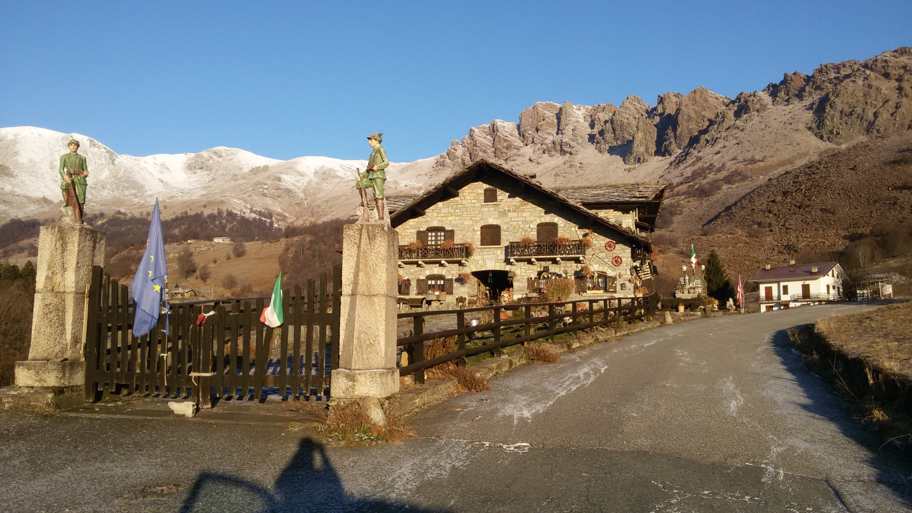 Giunto agli Asciutti, uno spettacolo sulla conca dei Tornetti. Pochi mm di polvere di ieri rendono il paesaggio fiabesco con un sole a palla! A sud è tutto sgombro da neve fino all’ultimo alpeggio dove finisce la sterrata. Da li neve a chiazze portante fino al colle. Oltre, la neve è continua fino in vetta, farina inconsistente nel tratto a N per aggirare il primo torrione. Qui finiva una traccia di qualche giorno fa, forse non si sono fidati del ripido traverso in leggera discesa. Ora è tracciato e ben percorribile. Da questo punto ho calzato i ramponi per salire l’evidente canalino che porta in cresta su neve dura e pendenza sui 30°. Aggirato poi a dx il testone roccioso per continuare sulla cresta che porta al ripido pendio finale. Anche questo su neve dura, indispensabili i ramponi, non ho usato la piccozza ma solo i bastoncini. Si esce a dx della cima con crocetta e Madonnina. Spettacolare vista su quasi tutte le vette delle valli di Lanzo e non solo. Sicuramente in queste condizioni la difficoltà non è solo EE ma almeno F+ aggiungendo un “sapore” alpinistico ad una escursione se no quasi banale. In completa solitudo.