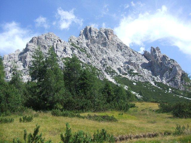 Nonostante il periodo ferragostano, pochissime auto in parcheggio, ancor meno escursionisti sul percorso Malga, rifugio Pramperet, F.lla Moschesin.