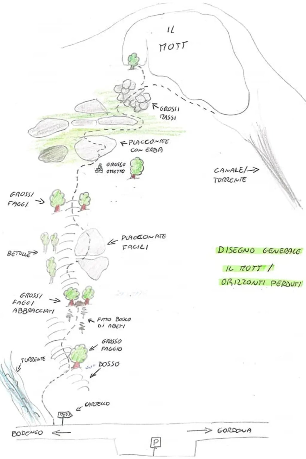 Parcheggiare alla piazzola elicottero (poco intuibile dalla strada) tra la fraz. Brusada e Bodengo, cartello segnalatore nascosto tra i rami. Poi traccia ben segnata da ometti e bolli rossi fino all'ultimo contrafforte.