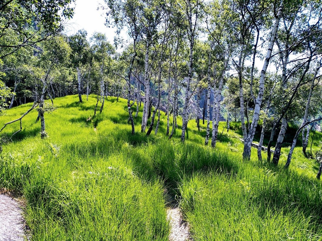 In caso di abbondante fogliame in certi punti la traccia svanisce ma aguzzando la vista si riesce sempre a scorgere su qualche betulla la classica striscia rossa.