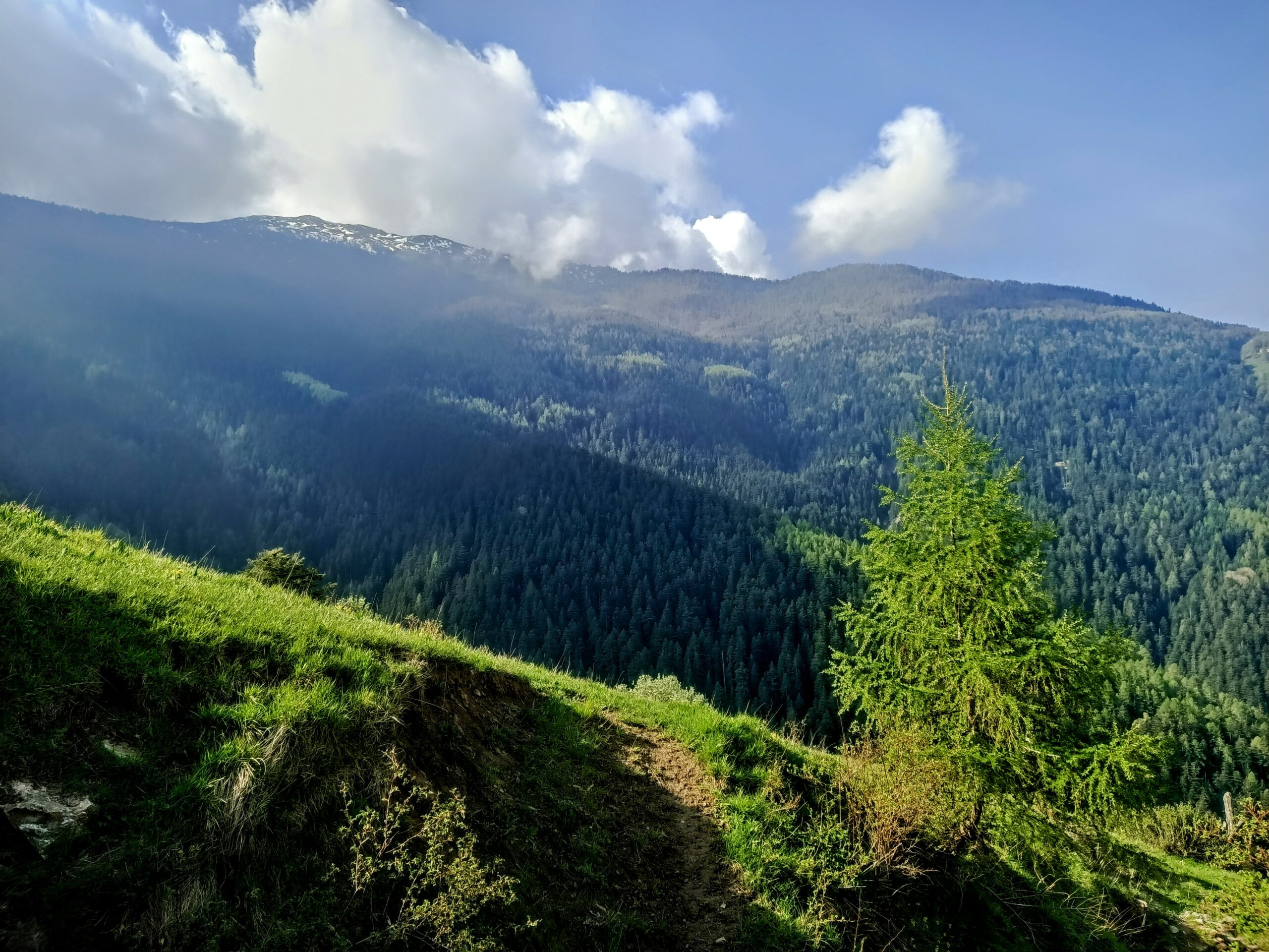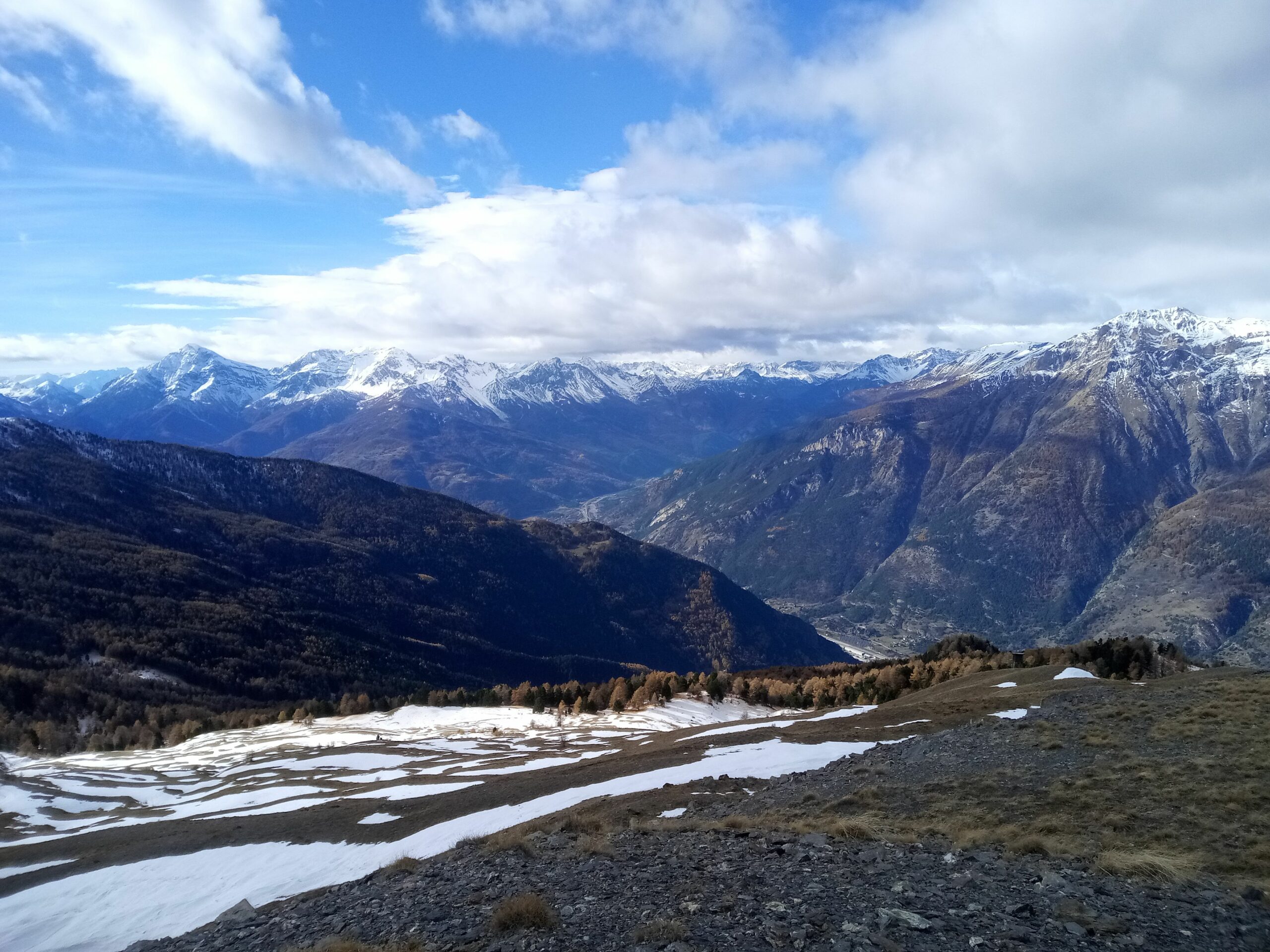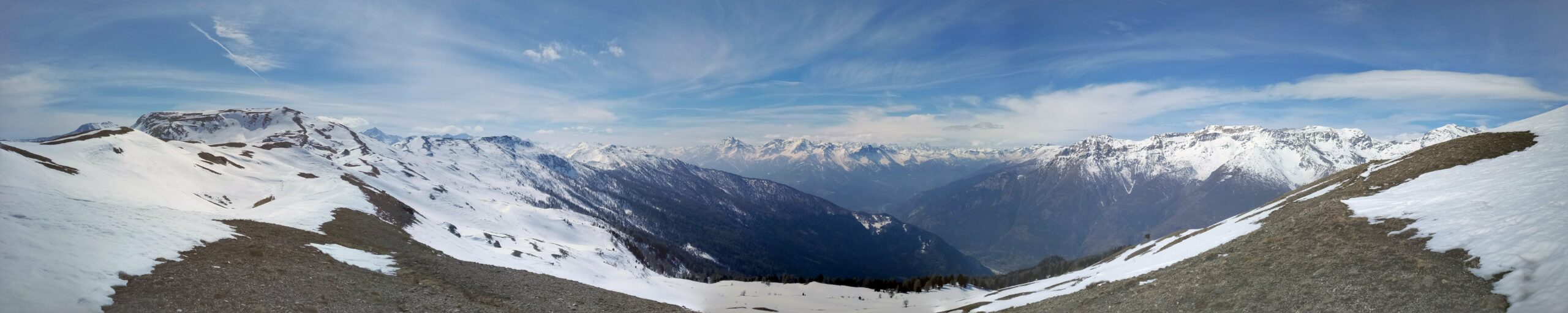 Seguendo il sentiero sempre ben segnalato si superano in successione le gr.Pineis (1346 m) e le gr.d’Himbert (1394 m) arrivando così alla grande borgata Montagne Seu dove è stata realizzata dal parco una casa rifugio (1771 m). Il gta piega a questo punto verso sinistra e continua a salire nel bosco intervallato da bellissime radure.