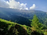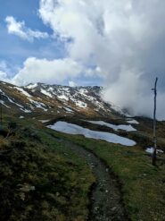 Si passa nei pressi dell’Alpe le Selle (2036 m) raggiungibile con breve deviazione e verso quota 2250 si esce sugli aperti pascoli superiori dove ben presto si incrocia la strada dei cannoni (palina, 2300 m ca.). A questo punto il sentiero gta non sale al colle Lauson proprio davanti a noi ma piega bruscamente a sinistra e, tagliando i pendii che scendono dal monte Gran Costa, raggiunge il colletto a quota 2483 apeto sulla val Chisone.