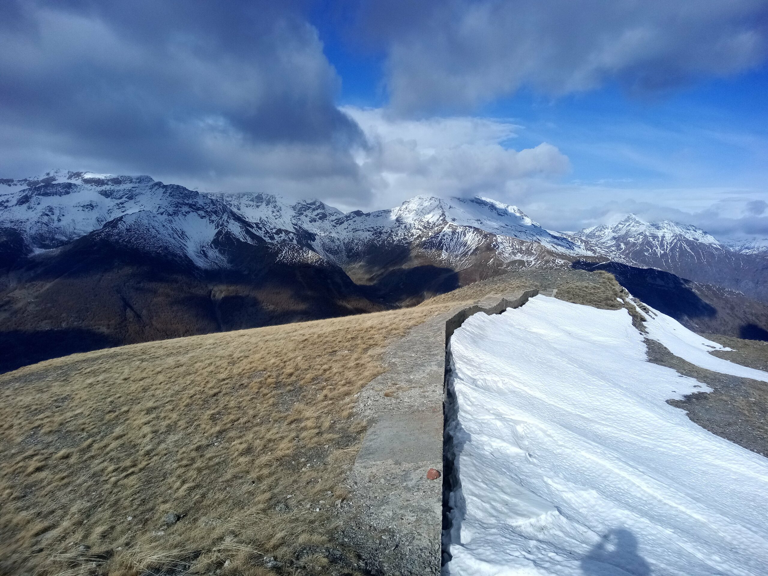 Seguendo il filo di cresta verso sinistra o la strada militare poco sotto versante val Chisone in breve si raggiunge la modesta ma panoramica Testa di Mottas (2547 m, palina) dove sorge un antica fortificazione militare.