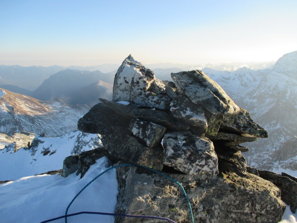 in vetta dato un’occhiata all’orario …circa le 16 !!! scandaloso..il tempo x due foto di numero e discesa il piu’ velocemente possibile per ripercorrere almeno con un po’ di luce la cresta del Mottiscia..tagliando fuori la punta facendo un traverso..