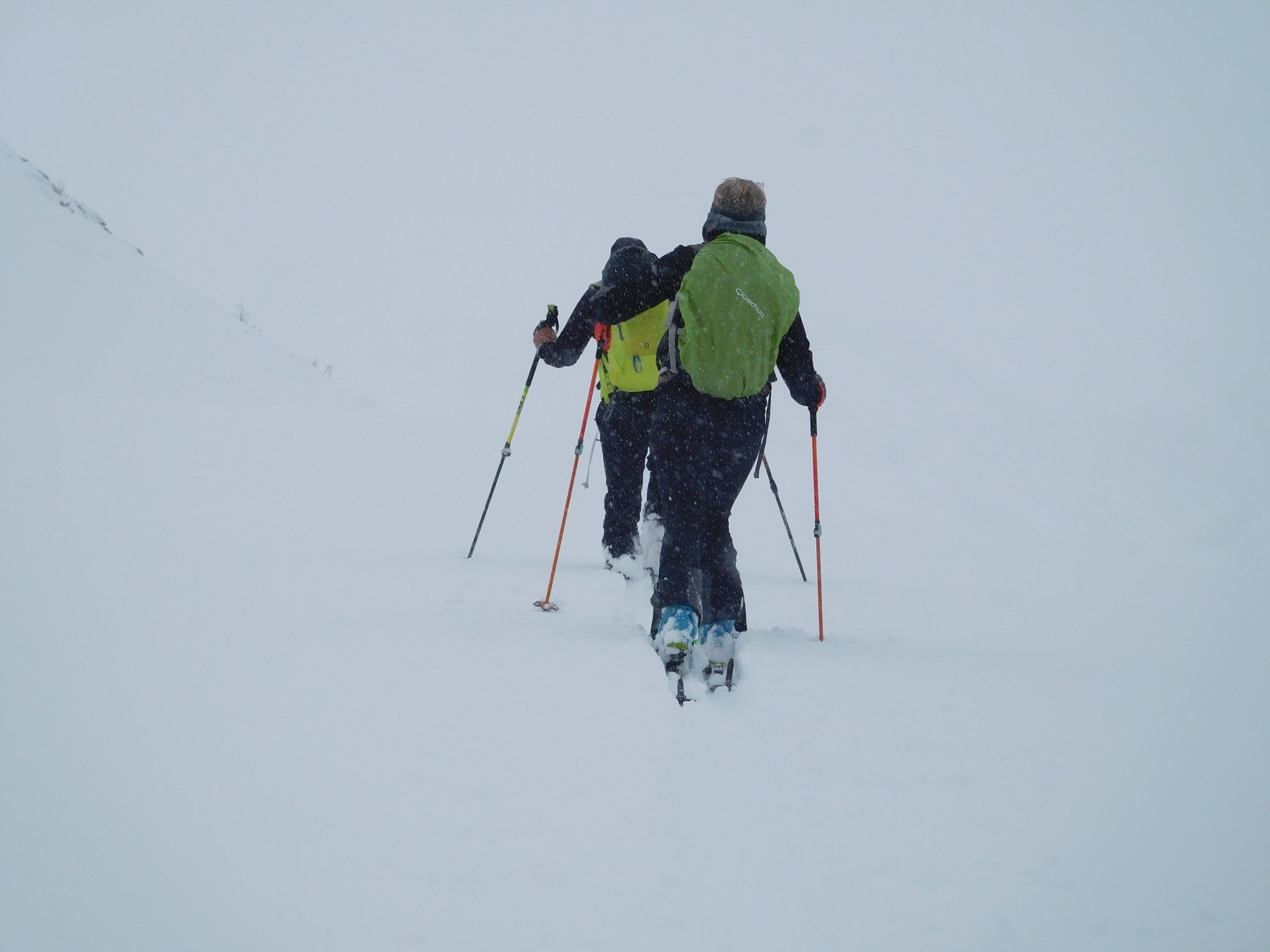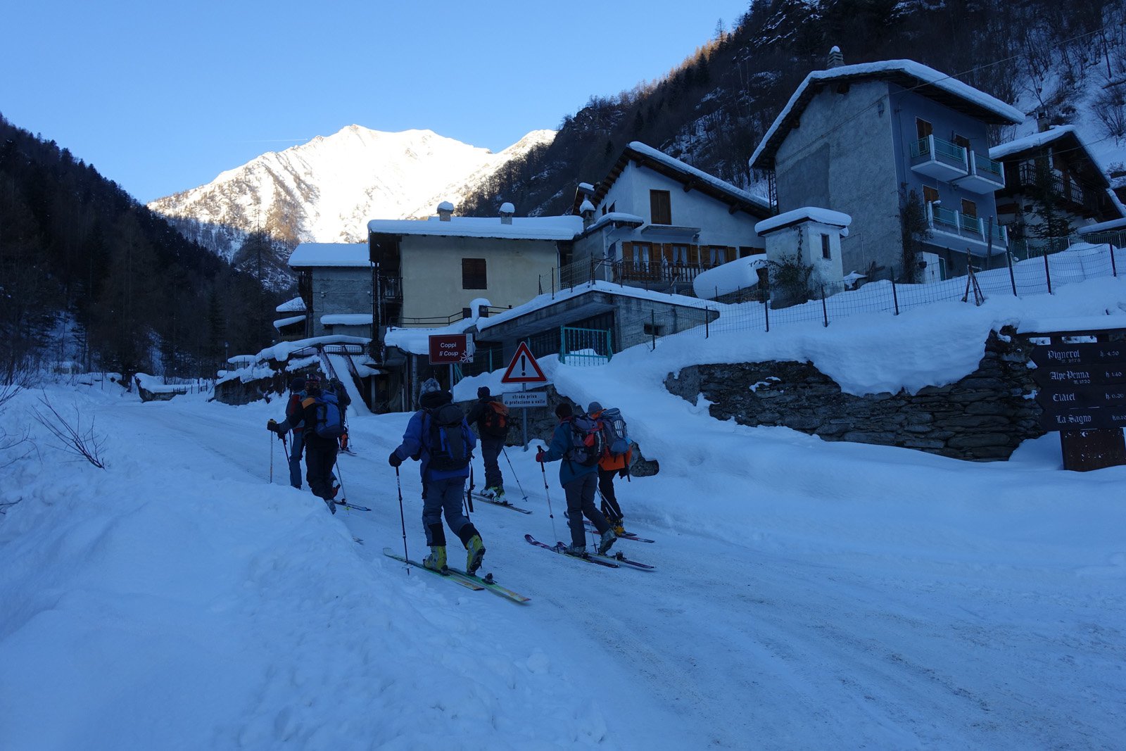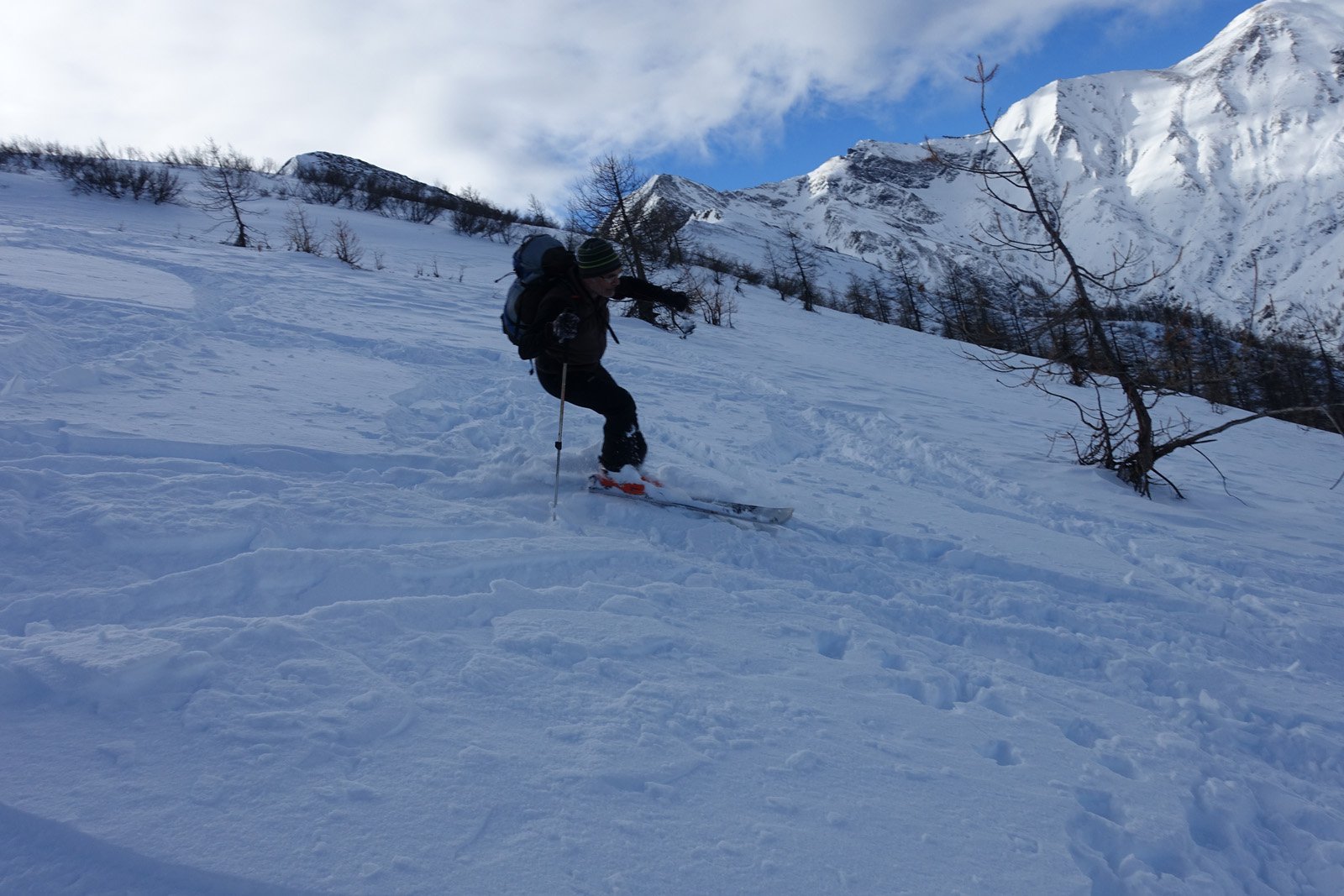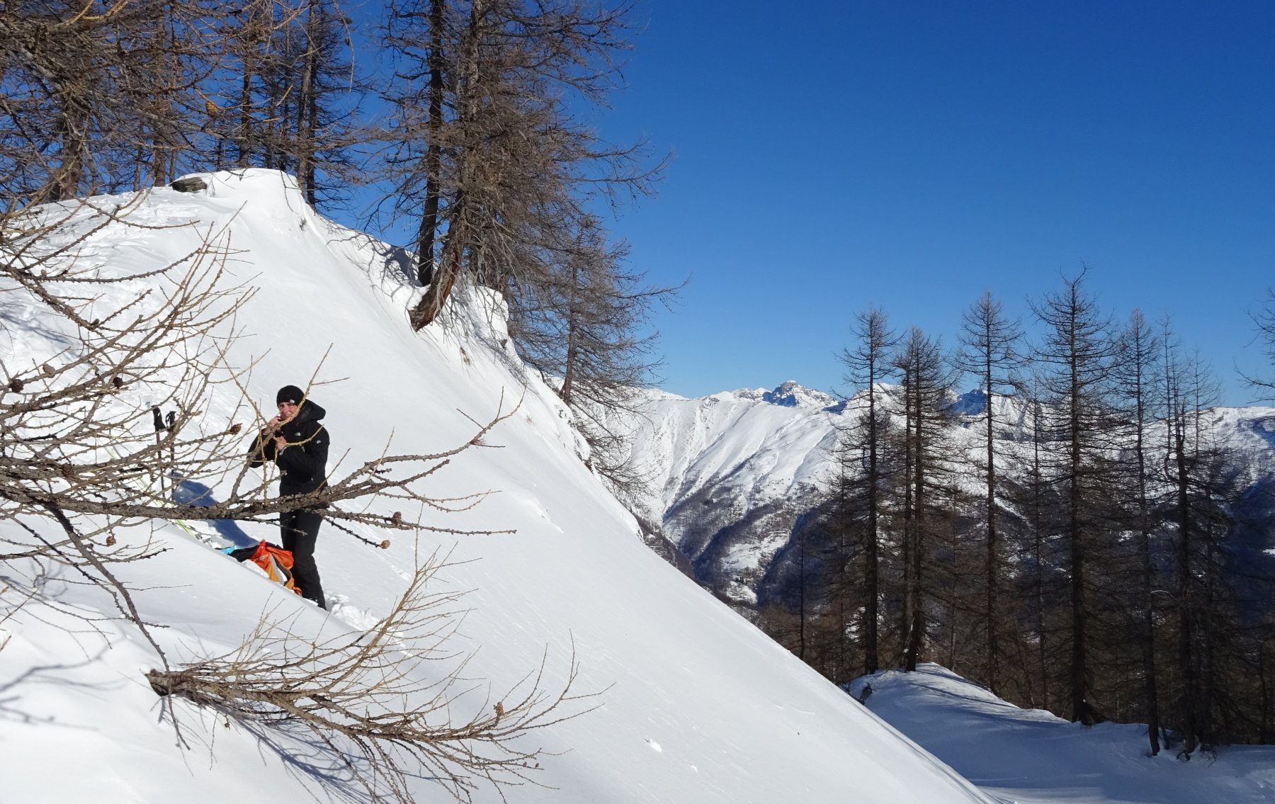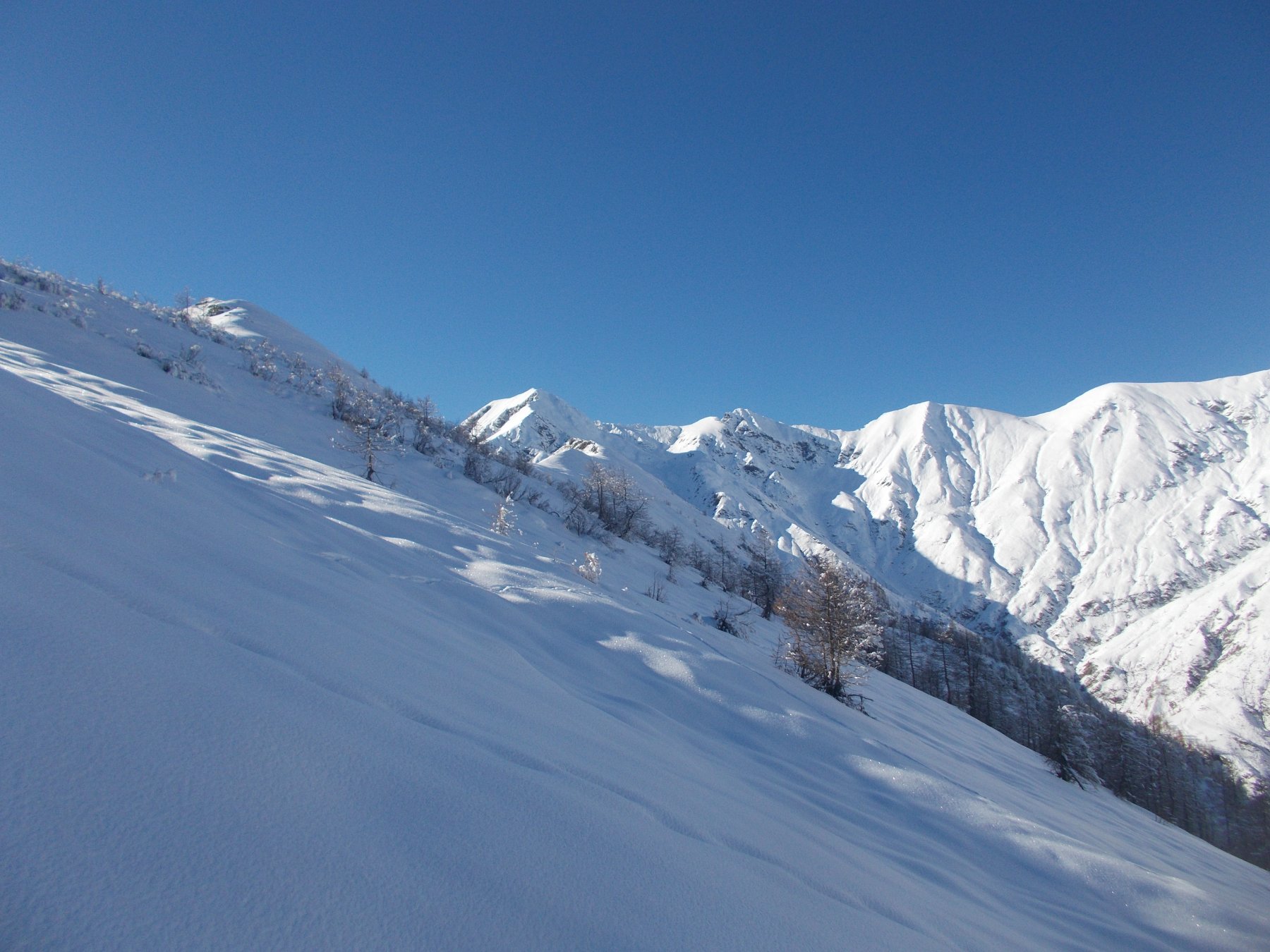 Quando la strada diventa sentiero e si inerpica nel bosco, a ripidi tornanti, la progressione si fa più difficoltosa (specie in discesa in caso di innevamento limitato).