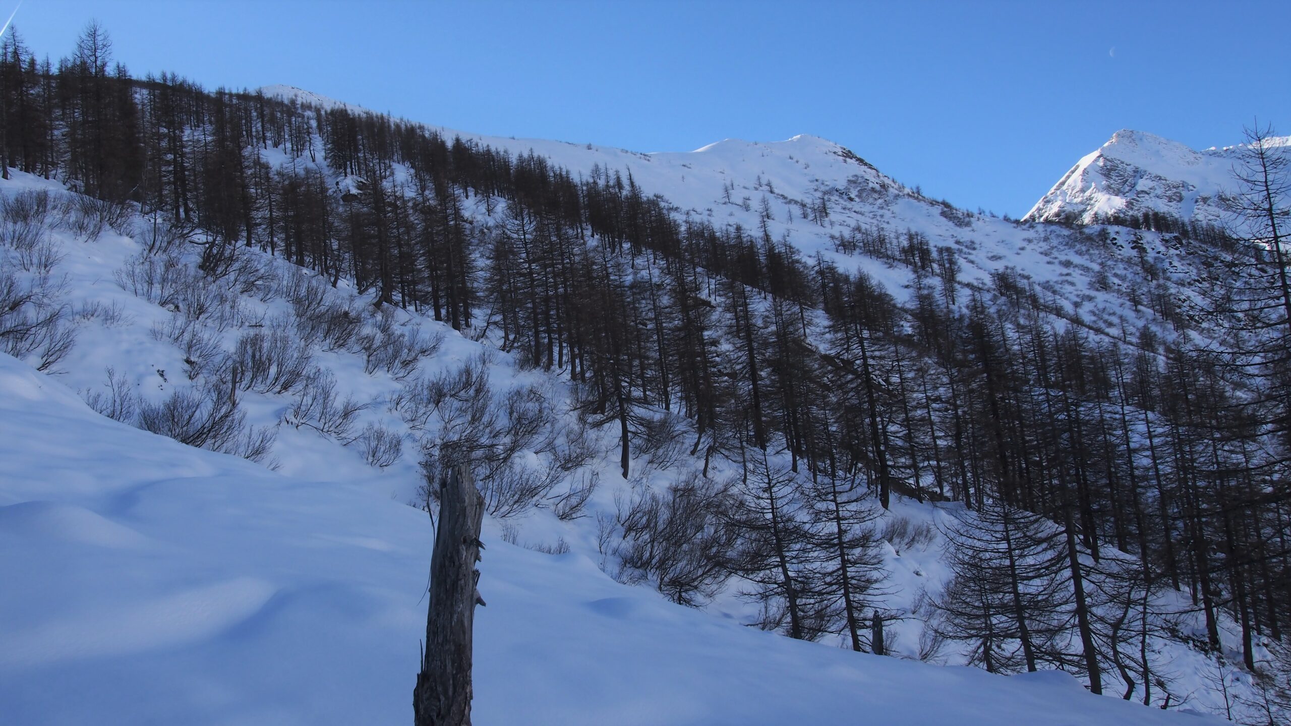 Discesa magnifica su abbondante neve fresca, noi ci siamo tenuti un pò troppo a sx dove il bosco è più fitto ravanando un pochetto, consiglio di tenersi più a dx.