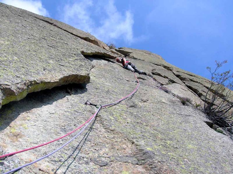 Una delle più belle arrampicate tradizionali della valle del Piantonetto con una gran varietà di situazioni e di stili.