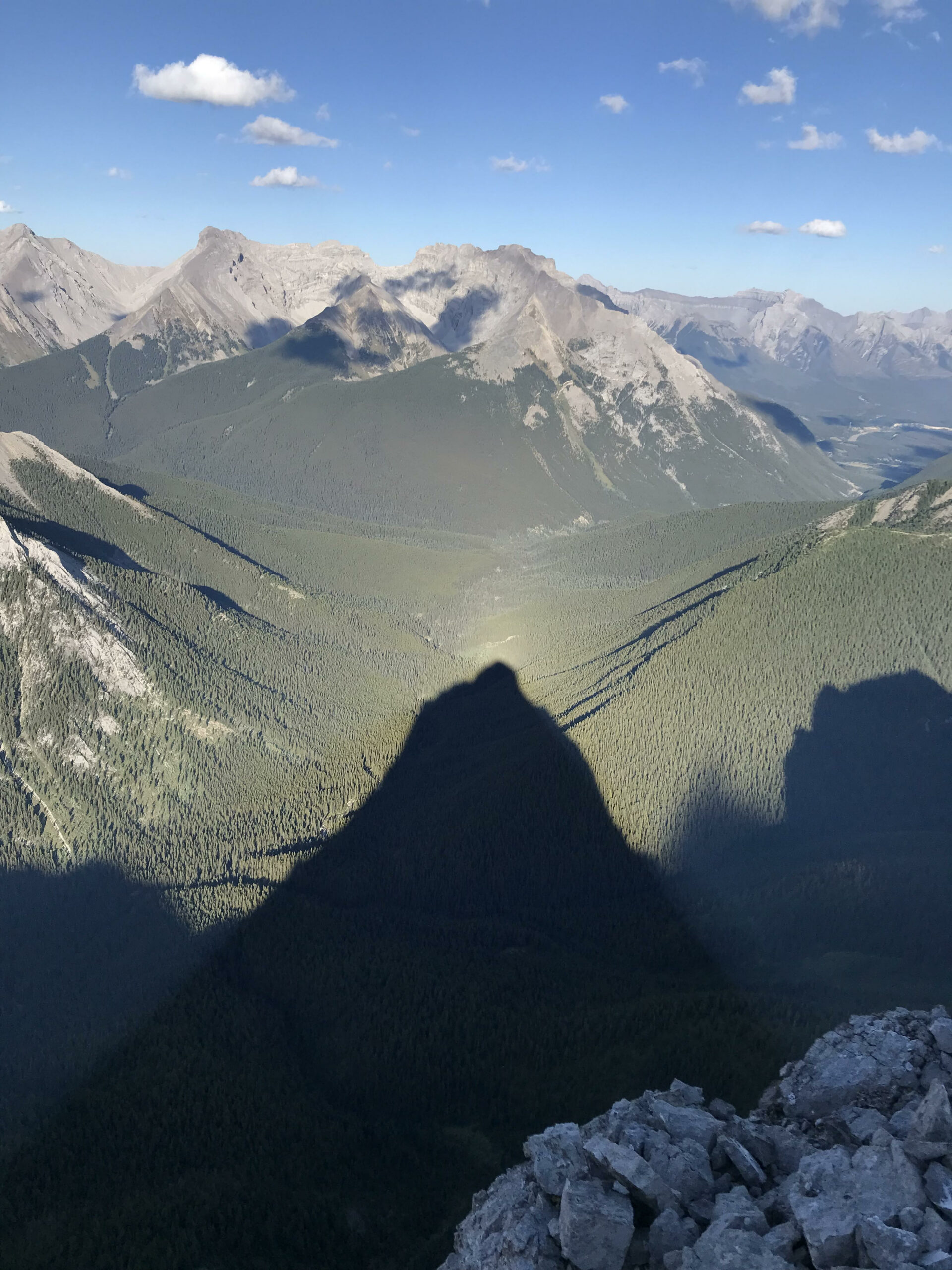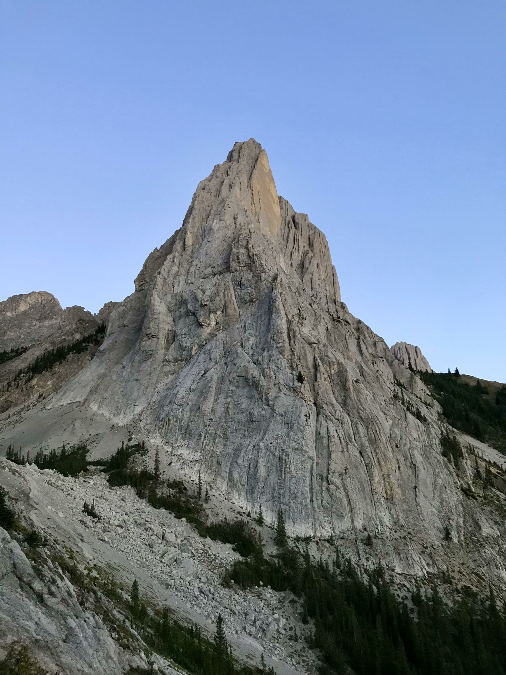 La via gmoser invece fu scalata da Hans Gmoser nel 1956. Gmoser era una guida svizzera, ed fu uno dei fondatori del ACMG Association of canadian mountain guides in Canmore. Lo stesso Gmoser scalo' altre vie classiche in zona come la via direttissima in Yamnuska ed altre nelle bagaboos. Mentre arrampicate immaginate il vecchio Conrad Kain che nel 1916 ha raggiunto la vetta e ha invertito il senso di marcia e fatto down climbing fino alla base. il tutto fatto in giornata.