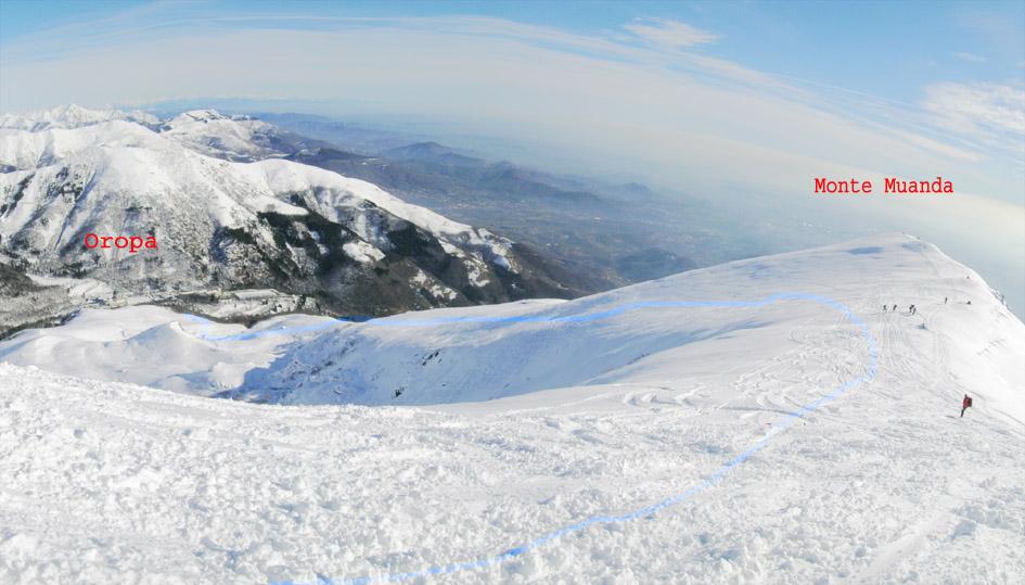 Si parte dal parcheggio dei pulmann nei pressi della stazione vecchia della funivia, in cima al Santuario d’Oropa. Si segue la strada delle cappelle fino a Pian Ge. In seguito ci si porta sui pendii più a sinistra ripidi ma sicuri. Da questi pendii esposti a nord-est si prosegue fino in cresta, dove si svolta a destra (direzione nord) e si prosegue facilmente fino in cima.
