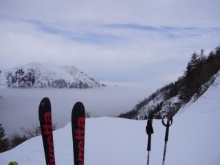 Partiti con un bel sole e iniziato la discesa purtroppo con scarsa visibilita’. Scesi a fianco della parete Piacenza trovando neve farinosa. Consigliabile.